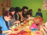 No raibu raibiem audumiem un pērlītēm, ar diegiem un adatām tapa oriģinālas rotas. Kas gan var būt labāks par pašas veidotu, neatkārtojamu piespraudi!? Pāris stundu laikā katra no mums tādu sev pagatavoja. Tagad nu amats rokā, atliek tik darboties, lai katram tērpam būtu skaists akcents. Paldies enerģiskajai pasniedzējai Ženijai, paldies dalībniecēm!