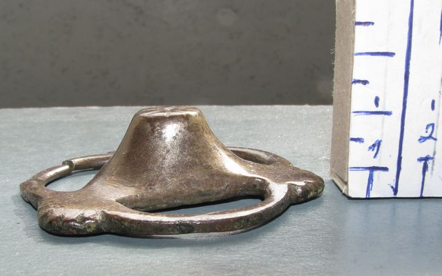 Kādreiz, pagājušajā gadsimta 90. gados, kad rakājos pa savu dārziņu, kas atradās kādreizējā ezera vietā, atraku vairākas lietas. Viena bija cara laika ugunsdzēsēju kokarde vai krūšu nozīme. Otra – Rīgas melnā balzāma svina plomba, datēta ar 1815. gadu. Trešais priekšmets bija apļveida "rotas lieta" no bāli dzeltenīga metāla. Nedaudz atgādināja ūdens krāna rokturi. Bet otrā pusē nebija stiprinājuma vietas pazīmes. Tāpēc vēršos pie Tukuma iedzīvotājiem, senlietu zinātājiem, uguns dzēsējiem pēc palīdzības. Apskatiet pievienotās fotogrāfijas un izsakiet, lūdzu, savus minējumus. Varbūt šo lietu tomēr vajag nodot Tukuma muzejam?