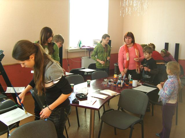 Nedēļu iepriekš tepat, Tautas nama telpās, zemītnieces apguva zīda apgleznošanas prasmi novadnieces Ievas Nahodkinas vadībā. Ērodeja pasākuma viešņu, prasmīgo skolotāju Ievu raksturoja kā jauku un radošu cilvēku, mājsaimnieci, kura ikdienā aprūpē savu saimniecību, bet brīvajā laikā aizraujas ar sirdij tīkamām lietām – floristiku, zīda apgleznošanu, rotas lietu darināšanu no filca un pērlītēm. Zīda apgleznošana ir smalka lieta, bet zinātājas, kas šo mākslu jau pamatos apguvušas, teic – šo prasmi tikai vajag pamēģināt un tad, kā tautā saka, āķis ir lūpā! Tad pārņem vēlme radoši izpausties vēl un vēl. Tiesa, pievēršoties šai sievišķīgi smalkajai lietai, jārēķinās arī ar izdevumiem, jo jāiegādājas gleznošanai nepieciešamie materiāli, krāsas. Bet uz šo nodarbi palūkojoties no otras puses – kas gan var būt jaukāks kā pašas apgleznotu šallīti uzdāvināt kādam mīļam cilvēkam!Katrā ziņā katra apgūtā prasme ir lielisks ieguvums katram interesentam.