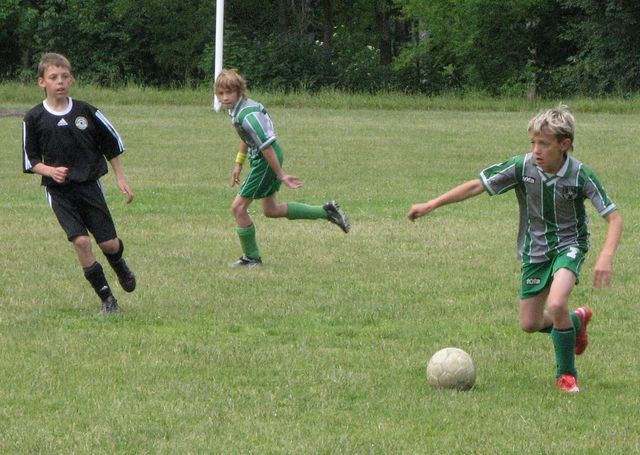 Trešā spēle – pret 2. vietas ieguvējiem Pluņģes VFK «Žiogeliai». Pirmajā puslaikā cīņa bija līdzvērtīga, bez liekām kustībām – lai tik ātri nepagurtu -, bet otrajā puslaikā sāka līt lietus (pat gāzt), un puikas sasparojušies guva uzvaru 1:0 (vārtus guva Atis Kovaļovs). Jāsāk domāt, ka mūsu zēniem patīk spēlēt lietū, jo, kad spīd saulīte, tad nekā nav, bet, kā sāk līt, tā, lūk, ir rezultāti! Nākamreiz būs jāsauc palīgā ugunsdzēsēju komanda, kas varētu ik pa laikam atvēsināt šos zēnus (hi-hi-hi)!