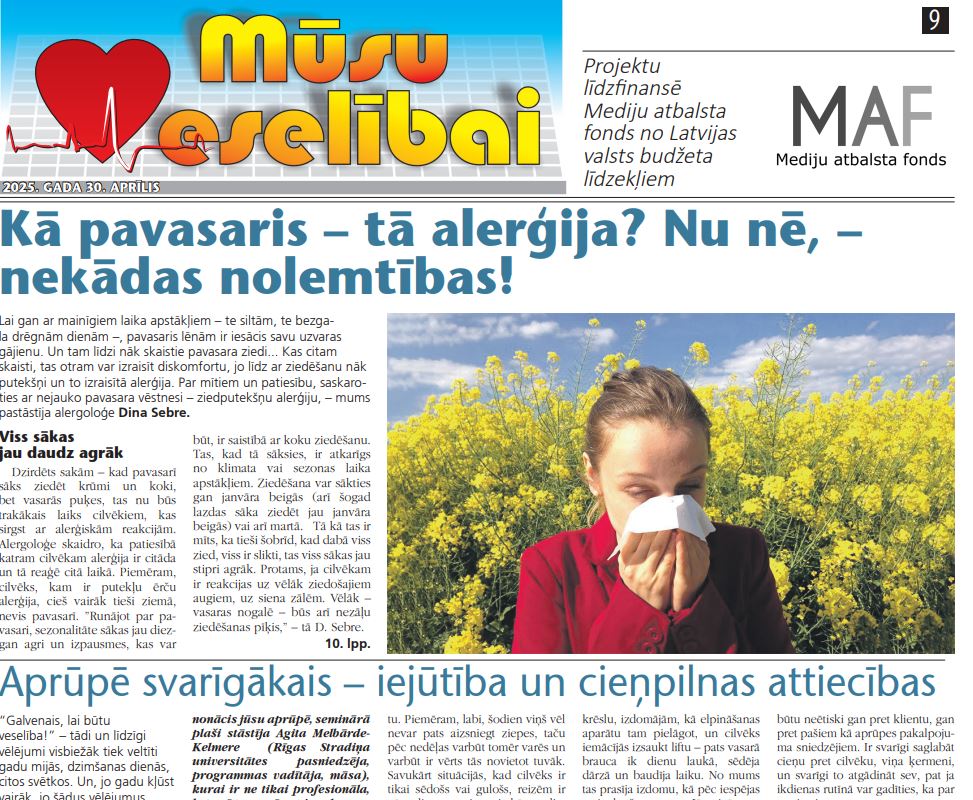 Mediju atbalsta fonda ieguldījums no Latvijas valsts budžeta līdzekļiem. Par publikāciju “Mūsu veselība” saturu atbild SIA “Novadu Ziņas”. #SIF_MAF 2024