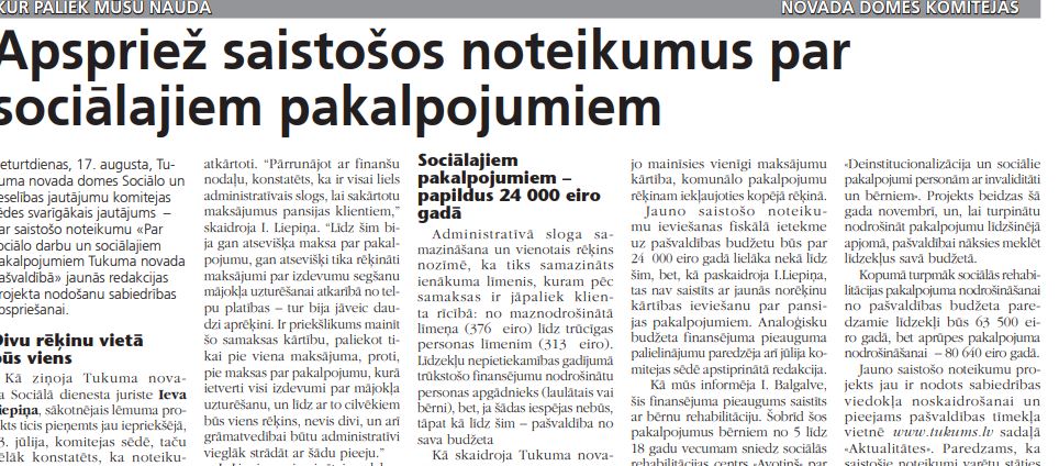 Sociālajiem pakalpojumiem – papildus 24 000 eiro gadā