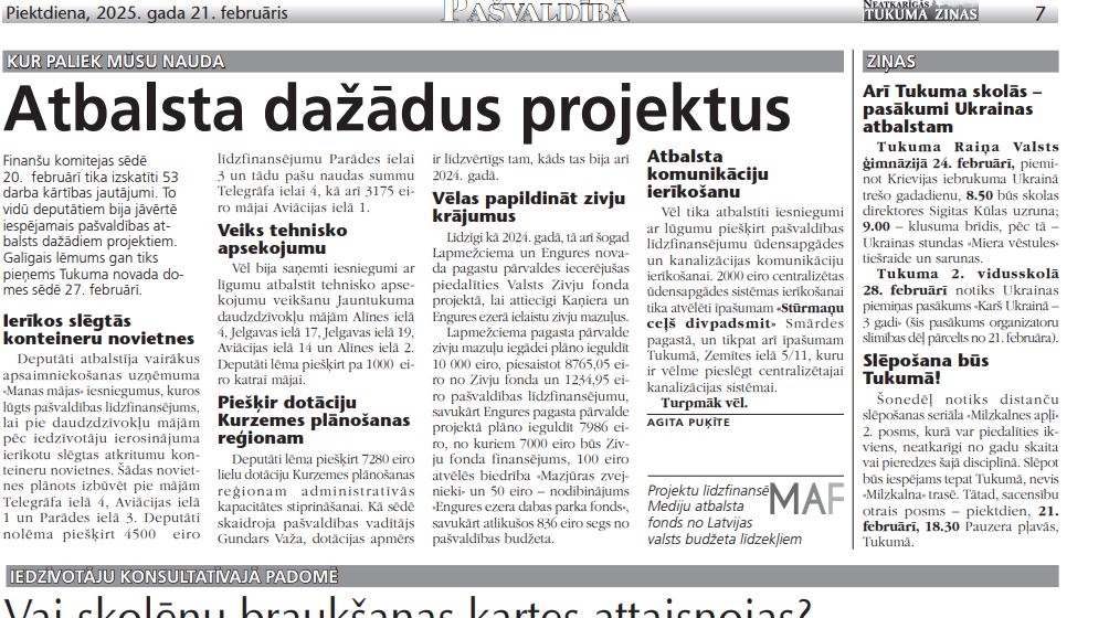 Mediju atbalsta fonda ieguldījums no Latvijas valsts budžeta līdzekļiem. Par publikāciju “Kur paliek mūsu nauda?” saturu atbild SIA “Novadu Ziņas”. #SIF_MAF 2024