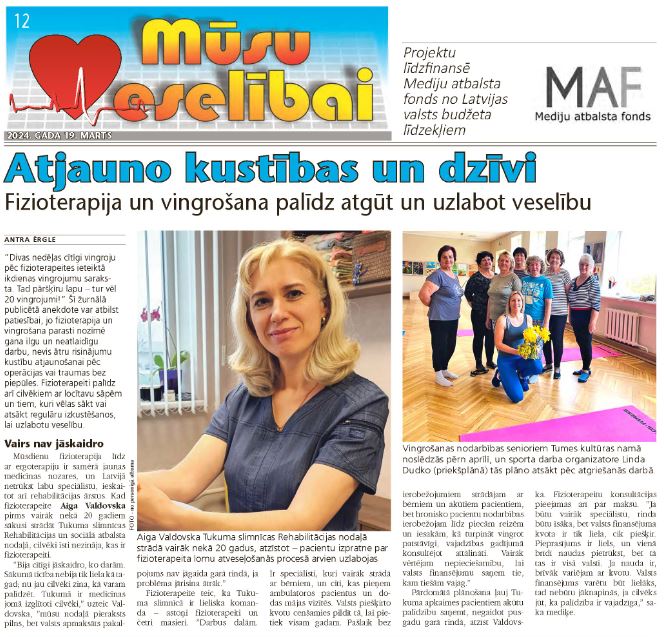 Mūsdienu fizioterapija līdz ar ergoterapiju ir samērā jaunas medicīnas nozares, un Latvijā netrūkst labu speciālistu, ieskaitot arī rehabilitācijas ārstus. Kad fizioterapeite Aiga Valdovska pirms vairāk nekā 20 gadiem sākusi strādāt Tukuma slimnīcas Rehabilitācijas un sociālā atbalsta nodaļā, cilvēki īsti nezināja, kas ir fizioterapeiti.