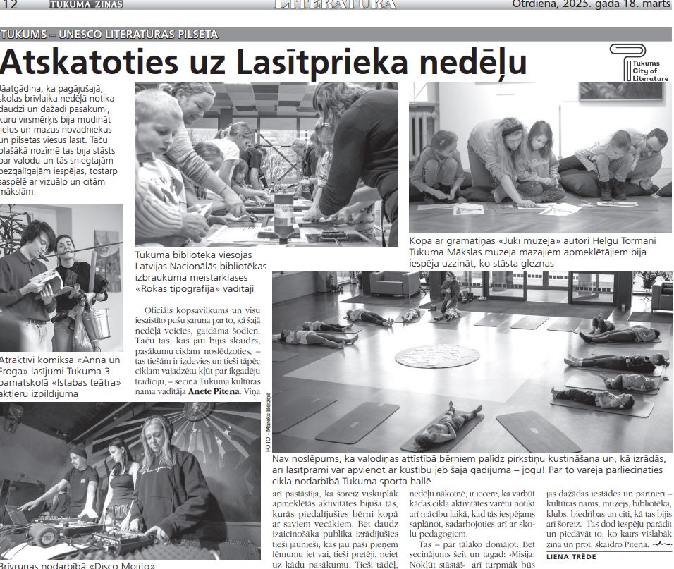 Jāatgādina, ka pagājušajā, skolas brīvlaika nedēļā notika daudzi un dažādi pasākumi, kuru virsmērķis bija mudināt lielus un mazus novadniekus un pilsētas viesus lasīt. Taču plašākā nozīmē tas bija stāsts par valodu un tās sniegtajām bezgalīgajām iespējas, tostarp saspēlē ar vizuālo un citām mākslām.