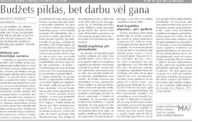 Jau vēstījām, ka kopumā šī gada budžets pildoties pat labāk nekā iepriekš cerēts. Tad nu līdz ar citiem papildu izdevumiem plānots atgriezties pie kārtības, kas paredz izmaksāt tā sauktās “naudas balvas“ pašvaldības darbiniekiem, kas uz laiku bija apturēts pasākums. Kā precizēja izpilddirektors Ivars Liepiņš, tās drīzāk saucamas par piemaksām, un būtu paredzamas Valsts svētkos un Ziemassvētkos. Toties arvien būs apturēti punkti, kas paredz naudas izmaksas darbiniekiem nozīmīgās jubilejās vai dzīves notikumos. I. Priede vēl interesējas, vai tas ies roku rokā ar darbinieku vērtēšanu? I. Liepiņš skaidroja, ka šajā gadījumā piemaksa tiek plānota 50% apmērā no konkrētā darbinieka algas, un papildu vērtēšana, kā noprotams, nav paredzama. Deputāti jautājumu atbalstīja, un tas tika virzīts tālākai izskatīšanai domes sēdē.