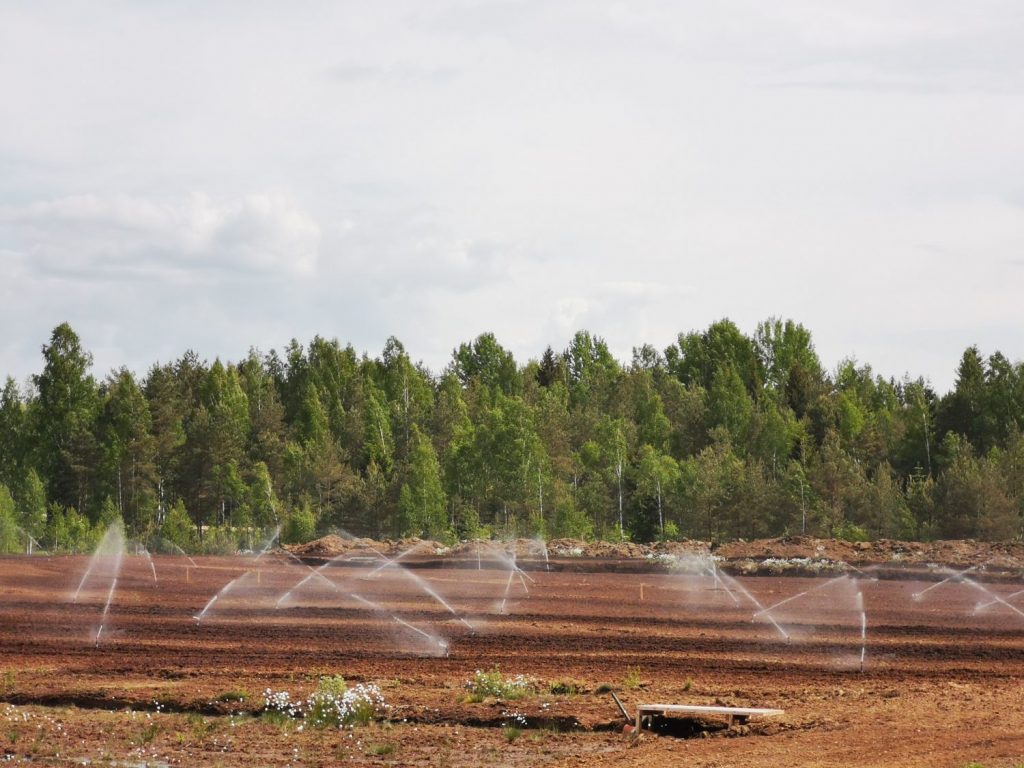 Būtisks piekšnosacījums veiksmīgai dzērveņu audzēšanai izstrādātos kūdras purvos ir efektīva laistīšanas sistēma. To izmanto arī SIA "Klasmann-Deilmann Latvia" Limbažu novadā.