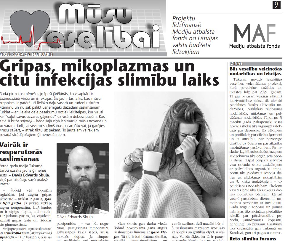 Mediju atbalsta fonda ieguldījums no Latvijas valsts budžeta līdzekļiem. Par publikāciju “Mūsu veselība?” saturu atbild SIA “Novadu Ziņas”. #SIF_MAF 2024