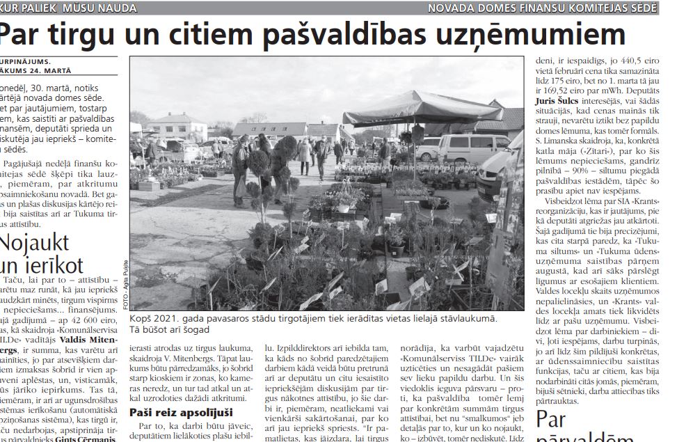 Pagājušajā nedēļā, finanšu komitejas sēdē, šķēpi tika lauzti, piemēram, par atkritumu apsaimniekošanu novadā. Bet tāpat garas un plašas diskusija kārtējo reizi bija saistītas ar Tukuma tirgus attīstību.