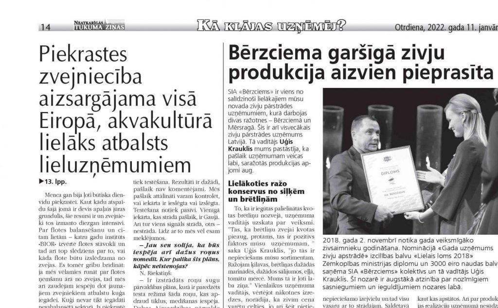 To, ka ir iegūtas palielinātas kvotas brētliņu nozvejā, uzņēmuma vadītājs uzskata par veiksmi. ”Tas, ka brētliņu zvejai kvotas pieaug, protams, tas ir pozitīvs faktors mūsu uzņēmumam, ” saka Uģis Krauklis, ”jo tās ir nepieciešams mūsu sortimentam. Ražojam ķilavas, brētliņas dažādās marinādēs, dažādos sālījumos, eļļā, tomātu mērcē. Mums tā ir ļoti laba ziņa.” Vienlaikus uzņēmuma vadītājs, vērtējot nākotnes izredzes, norādīja, ka zivīm cena varētu celties, jo arī šeit pietiekami nozīmīgu lomu spēlē energoresursi, kas nepieciešami zivju saldēšanai. Arī degvielas cenas zvejniekiem, kuri zvejo brētliņas, ceļas. Ar to būs jārēķinās.