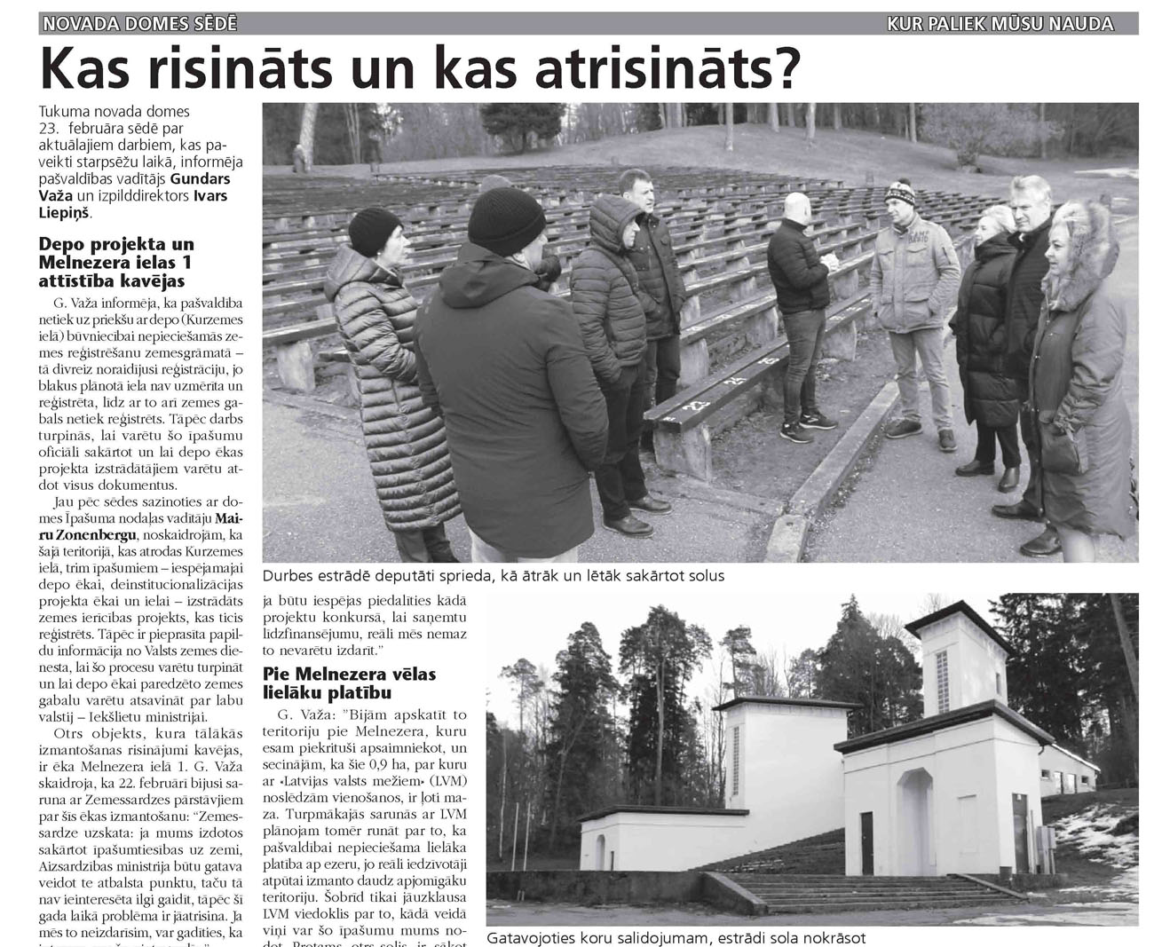 G. Važa: ”Bijām apskatīt to teritoriju pie Melnezera, kuru esam piekrituši apsaimniekot, un secinājām, ka šie 0,9 ha, par kuru ar Latvijas valsts mežiem (LVM) noslēdzām vienošanos, ir ļoti maza. Turpmākajās sarunās ar LVM plānojam tomēr runāt par to, ka pašvaldībai nepieciešama lielāka platība ap ezeru, jo reāli iedzīvotāji atpūtai izmanto daudz apjomīgāku teritoriju. Šobrīd tikai jāuzklausa LVM viedoklis par to, kādā veidā viņi var šo īpašumu mums nodot. Protams, otrs solis, ir, sākot izstrādāt teritorijas plānojumu, lemt par pilsētas robežu maiņu, lai mežs ap Melnezeru tiktu iekļauts pilsētas robežās.”