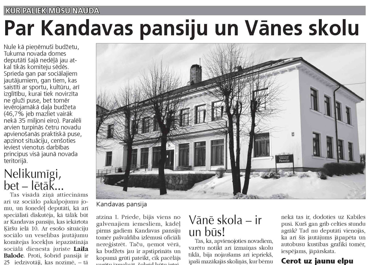 Jāpiebilst, ka 10 bērni, kuri varētu būt bijuši Vānes pamatskolas audzēkņi, jau šobrīd mācās kaimiņu novadā, Kabiles pamatskolā, kas arī tuvākā mācību iestāde. Un pašvaldībai tas izmaksā ap 136 eiro mēnesī par katru bērnu. Vēl septiņi dodas uz mācībām K. Mīlenbaha vidusskolā Kandavā, bet 2 – Kandavas reģionālajā vidusskolā. Te gan problēma, kā norādīja izpilddirektors Ivars Liepiņš, varētu rasties arī apstākli, ka autobuss, kurš bērnus ved uz Kandavu, ceļā dodas vismaz 40 minūtes ātrāk, nekā tas ir, dodoties uz Kabiles pusi. Kurš gan grib celties stundu agrāk? Tad nu deputāti vienojās, ka arī šo jautājumu jāpapēta un autobusu kustības grafiki tomēr, iespējams, jāpārskata.