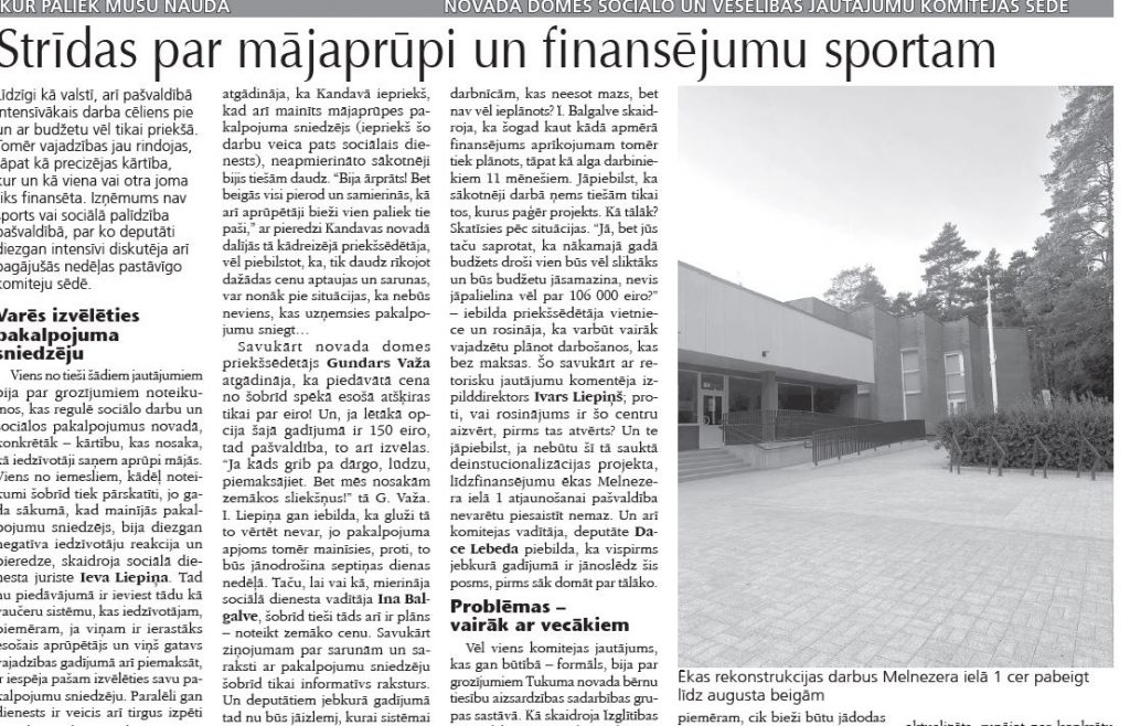 Sociālo jautājumu sēdē, kā ierasts, vairāki jautājumi bija veltīti pašvaldību dzīvokļiem, to nomāšanas līgumiem un statusam. Viens no tiem gan bija tikai “kļūdu labojums“, proti, kā skaidroja speciāliste mājokļu jautājumos Ligita Proņina, kāds no dzīvokļiem Meža ielā netīšam bija nokļuvis tā saukto neatsavināmo sarakstā. Tas pamanīts, jo līdzšinējā un ilggadējā īrniece izteikusi vēmi izmantot savas pirmpirkuma tiesības, kas arī iespējams, jo dzīvoklim nav ne sociālā, ne arī speciālistam izīrējamā dzīvokļa statuss. Deputāts Juris Šulcs gan ne pirmo reizi rosināja, ka varbūt šādus jautājumus vairs nebūtu jāvirza izskatīšanai uz domes sēdi? Tā teikt – izlemtu iekšēji? L. Proņina rosinājumam sliecās piekrist, tomēr mudināja ar kārtības izmaiņām vēl iepauzēt, jo šobrīd pirmajā lasījumā Seimā ir pieņemti valstiski grozījumi kārtībā, kā pašvaldībai iedzīvotājiem jāpalīdz dzīvokļu jautājumā. Iespējams, pašvaldībai tad nu būs tāpat noteikumi jāpārskata un tad – visu pie reizes.