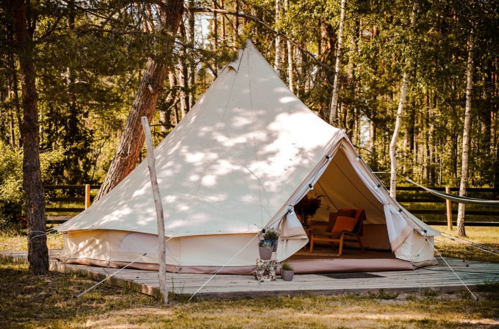 – Esam atpūtas vieta nelielajā piejūras ciematā – Bērzciemā. Nodrošinām nakšņošanas un atpūtas iespēju pie dabas, jo atrodamies unikālā vietā starp jūru un ezeru, ko ieskauj skaisti priežu meži. Ideja par šādas vietas izveidi radās manam vīram Marekam. Viņš ir dzimis un uzaudzis Bērzciemā, un Mareka senči bija vieni no pirmajām piecām ģimenēm, kuras uzsāka saimniekot šajā apdzīvotajā vietā. Tāpēc piederības sajūta šai vietai arī mūsu ģimenei ir jo cieša. Brīdī, kad pilnībā atguvām savu senču īpašumu, sākām domāt, kā mēs to varētu izmantot tā, lai nebūtu tikai zāli jāpļauj, jo pārdot to nekad nav bijis mūsu mērķis. Gribējām sākt nodarboties ar uzņēmējdarbību arī tāpēc, lai dzīve ciemā neapsīktu, bet veidotos mazi uzņēmumi, kas liek tās iedzīvotājiem palikt laukos un nedoties uz lielajām pilsētām. Kā arī vēlējāmies padalīties ar to skaistumu, kas mums dots, kā arī, redzot Jūrtakas gājējus, kas plūda garām mūsu mājām, radās šī ideja par vienkāršu, bet glamūrīgu atpūtas vietu ar nakšņošanas iespējām. Piedāvājam nakšņošanu gaumīgās un labiekārtotās dabīga materiāla zvanu teltīs, bet ir iespēja šeit palikt arī ar savu telti, kemperi. Nodrošinām atpūsties gribētājiem labiekārtotas koplietošanas ēdiena gatavošanas vietas ar kempinga galdiem, griliem un tā piederumiem. Viesiem ir pieejams arī sanitārais mezgls, dzeramais ūdens, kā arī ir nodrošināta iespēja šķirot atkritumus.