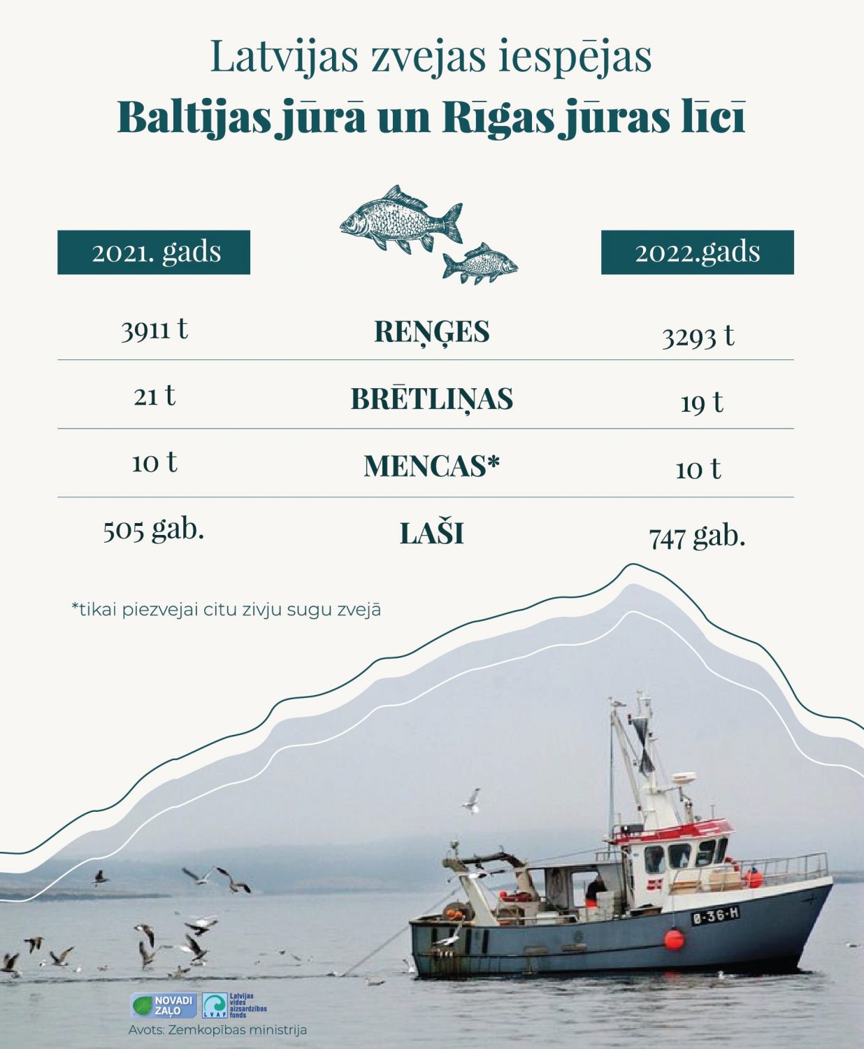 Latvijas Baltijas jūras reņģu kvotas daļa nav visai liela, jo galvenais traļu zvejas objekts jūras ūdeņos ir brētliņas, bet reņģe ir tikai piezveja. Līdz ar to abu sugu kvotu summārais iznākums ir pozitīvs (par 2800 tonnām vairāk nekā 2021. gadā) un palielinās mūsu zvejnieku iespējas zvejā ar traļiem.