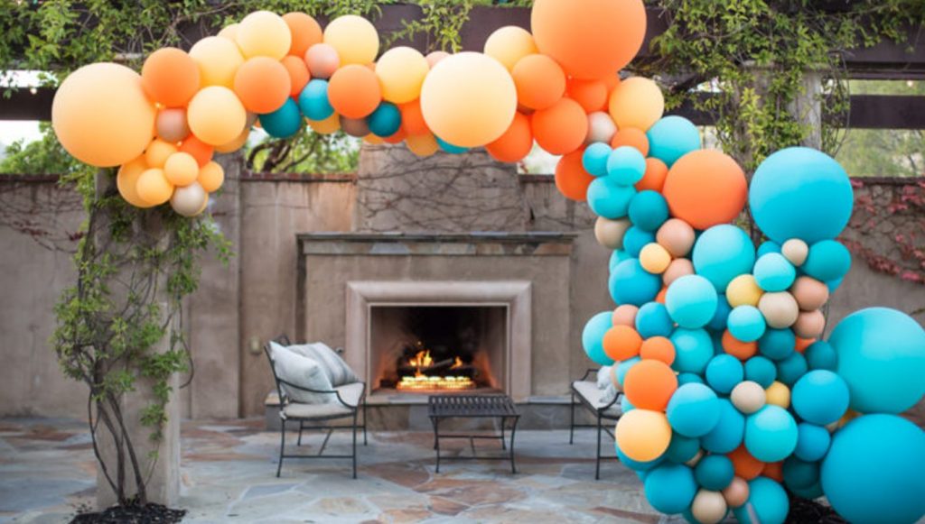 2. Kāzas. Kāzās šādi dekori papildina romantisko noskaņu. Ar baloniem rotātas arkas kļūst par stilīgu akcentu uz kāzu ceremoniju un svinību fona.