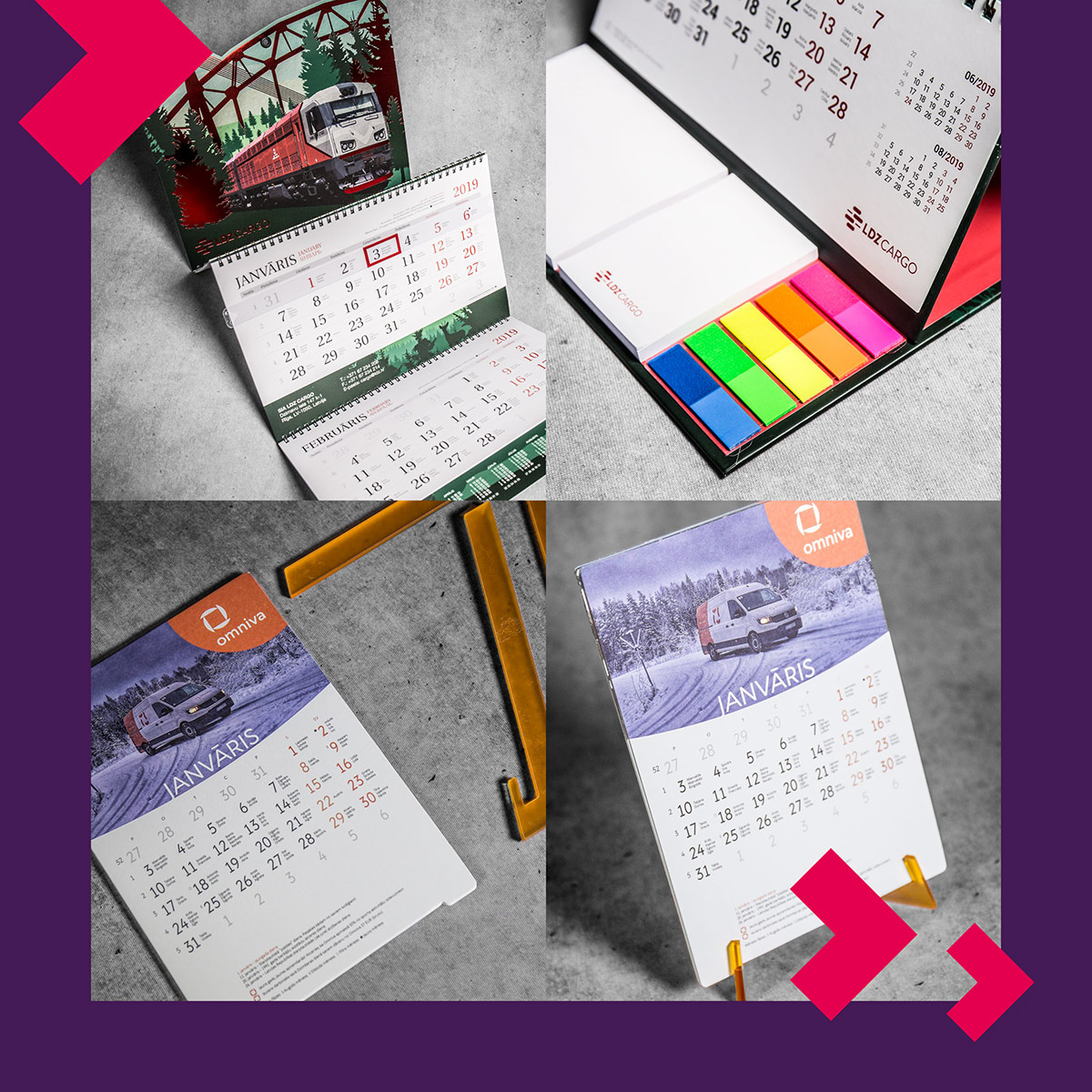 Reklāmas aģentūras enivo print pakalpojumu klāstā jau vairāk nekā 15 gadus ir kalendāru izgatavošana, kur tiek radīti izcili kalendāri. Jebkuru kalendāru veidošana sākas vispirms ar dizaina izstrādi, līdz labāko materiālu izvēlei un poligrāfiskai pēcapstrādei. Galvenais ir izveidot kalendāru, kas būs noderīgs, gaumīgs un vēl – papildus sniegs informāciju par Tavu uzņēmumu.