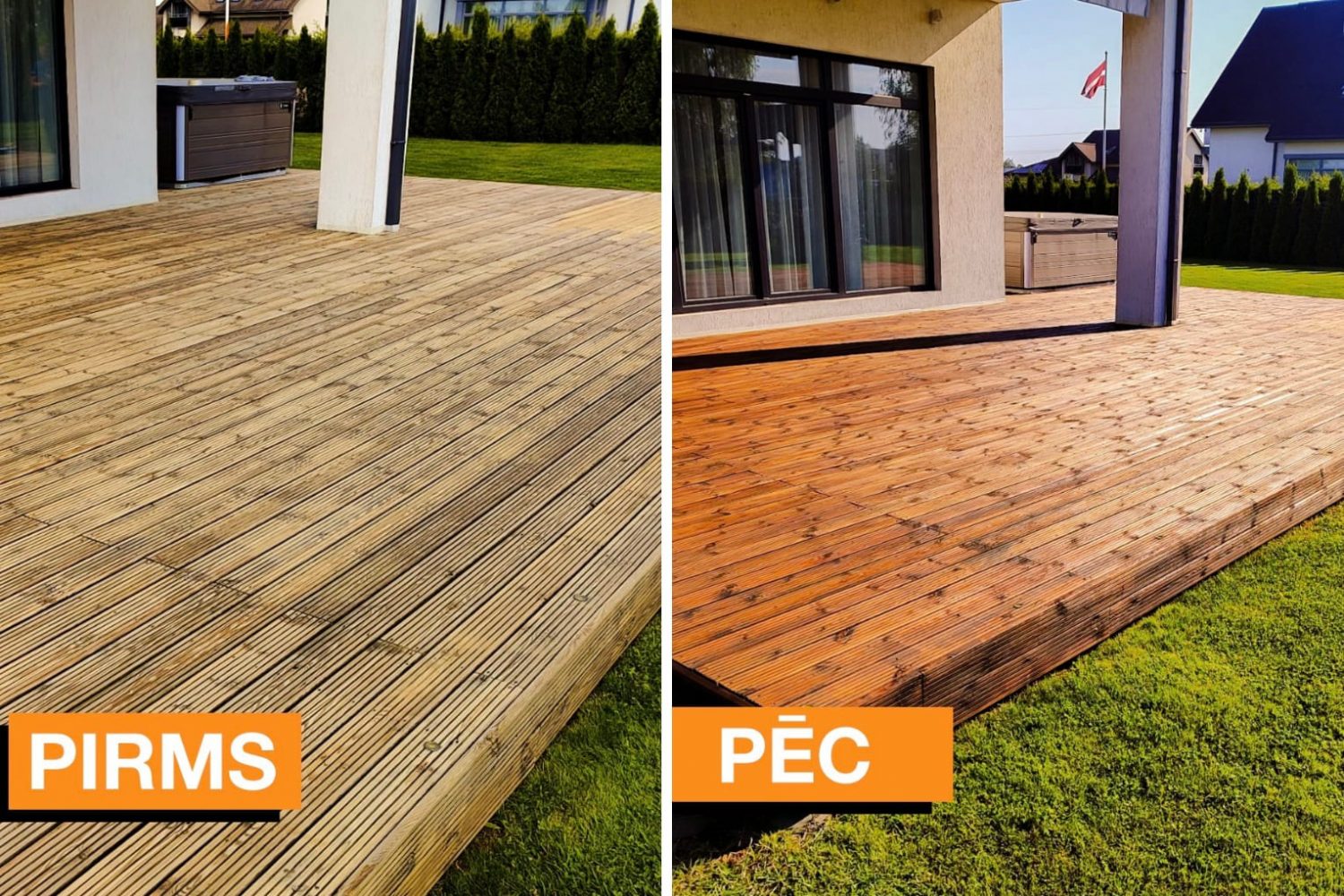 Nav nekā patīkamāka par atpūtu uz savas koka terases – līdz brīdim, kad paskaties zem kājām un redzi pelēkus, plaisājušus dēļus. Gadu laikā saule, lietus un sals dara savu – koks sāk pelēt, pārklājums nolobās, un terase pamazām zaudē izskatu. Par laimi, koka seguma atjaunošana nav tik sarežģīta, kā varētu šķist – daudz ko var izdarīt paša spēkiem vai ar meistara palīdzību.