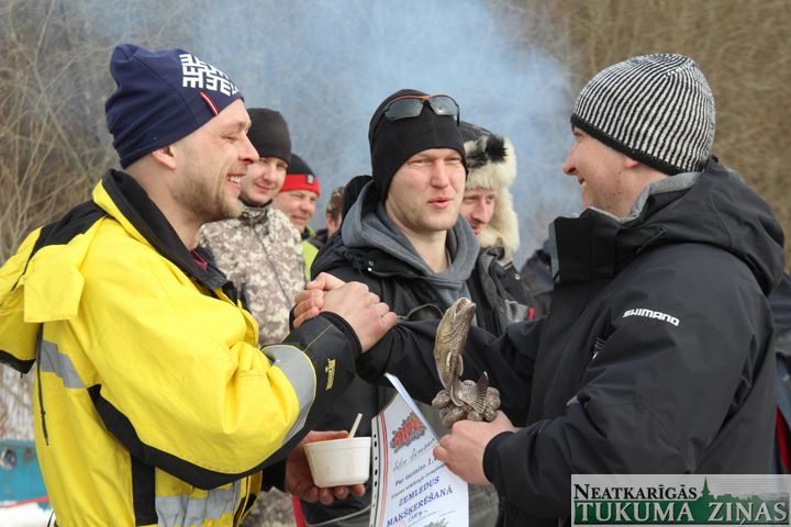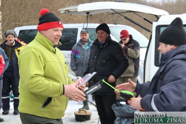 Sacensībās bija pieteikušies un uz ledus uzkāpuši 38 dalībnieki – no Irlavas, Jaunpils, Jaunsātiem, Ozolniekiem, Tukuma, Sēmes, kā arī no Rīgas. Sacensībās 1. vietu ieguva Artis Akmanis no Tukuma ar 1.43 kg loma kopsvaru, 2. – Mārtiņš Ozoliņš no Jaunpils (1,428 kg), 3. – Juris Vēveris no Tukuma (1,218 kg). Aplūkojot kopējo tabulu, var secināt, ka no Bišpēteru ūdens krātuves tika izmakšķerēti aptuveni 10 kg zivju.