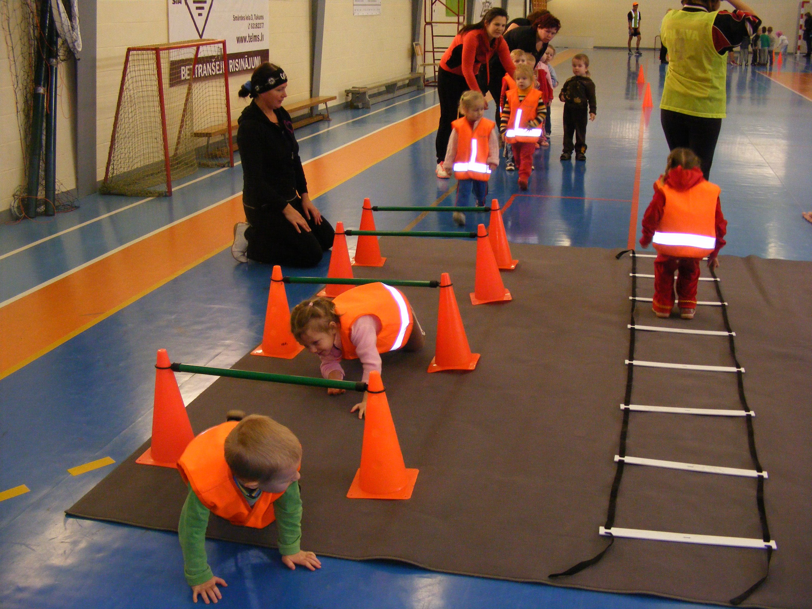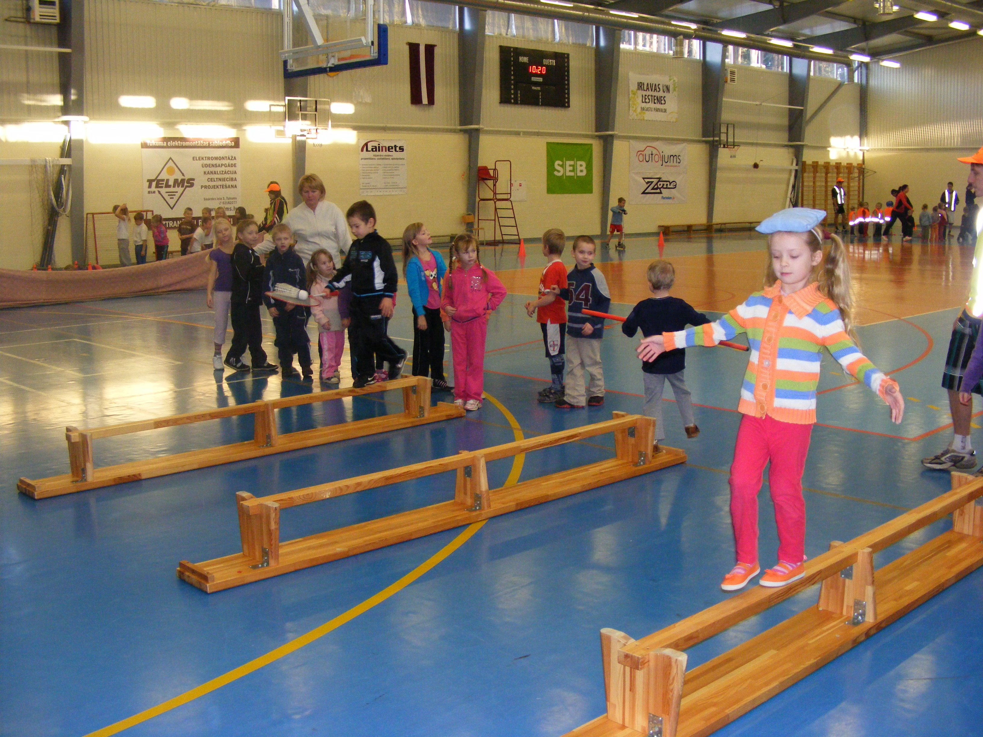 Jau trešo reizi Irlavas sporta namā pulcējās paši mazākie Irlavas un Lestenes pagastu pārvaldes bērni, lai kopā pavadītu laiku un arī nedaudz pasportotu. Pulciņš sanāca diezgan varens – 99 bērni no Irlavas vidusskolas 1. un 2. klases, bērnudārza «Cīrulītis» trīs grupiņas un Lestenes bērnu grupiņa «Ķausis». Kā jau kārtīgu sporta stundu, sākām ar iesildīšanos sporta skolotāja Madara vadībā, tad pie darba ķērās Irlavas skolas 12. klases audzēkņi, kuri piecās apakšgrupās palīdzēja mazajiem ar savu padomu un izskaidroja darāmo. Katrā “darbavietā” bija jāstrādā 10 minūtes.