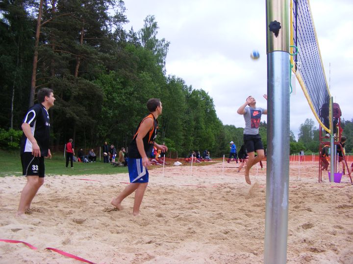 Uzlabots smilts klājums, četri profesionālie laukumi un daudz citu jaunumu ir tas, kas 1. sacensību kārtā pulcēja 16 vīriešu un 5 sieviešu komandas. Pieteikušās dalībai bija komandas no Dobeles, Jaunpils, Remtes, Viesatām, Tukuma, Sēmes, Kaives, Tumes un, protams, Irlavas. Sacensību atmosfēru varbūt nedaudz bojāja aukstais laiks, bet tas nemazināja cīņassparu spēļu laikā. 49 spēles bija nepieciešamas, lai noskaidrotu uzvarētājus sieviešu un vīriešu pludmales volejbola (3:3) 1. posmā. Trešo vietu dāmām izcīnīja komanda «Tume». Otro vietu ieņēma komanda «Uzcel man», bet 1. vietu ieguva komanda «Kristīne Agilera». Savukārt vīriešu izšķirošās spēles jau notika puskrēslā, kur cīņā par 3. vietu «Erceni» uzvarēja komandu «Uģis», bet cīņā par 1. vietu komanda «AMSA» izrādījās veiksmīgāka par «Remti». Sacensības Irlavā plānotas septiņās kārtās visas vasaras garumā. Kopvērtējumā vērtēs rezultātus piecās labākajās kārtās. Maksimāli iespējamais dalībnieku skaits vienā kārtā ir 20 vīriešu un 8 sieviešu komandas. Lai sacensību dienā nebūtu kavēšanās, obligāta ir iepriekšēja pieteikšanās. Ar nolikumu var iepazīties mājaslapā www.skirlava.lv vai zvanot pa tālr. 26598997 (zvaniet laikus arī tad, ja kas nesanāk tā, kā bija plānots. Tas ļoti atvieglos tiesnešu darbu).