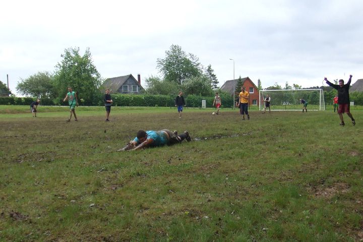 Lai arī svētdienas, 26. maija, rīts bija krietni apmācies un līņāja, Jaunsātos pulcējās sportisti un sporta fani, lai, kopīgi sacenšoties, atbalstītu Labestības dienas ideju. Viss iesākās ar futbola spēli, kurai bija pieteikušās piecas komandas – no Tumes, Pūres, Tukuma Lauktehnikas un divas vietējo puišu komandas.