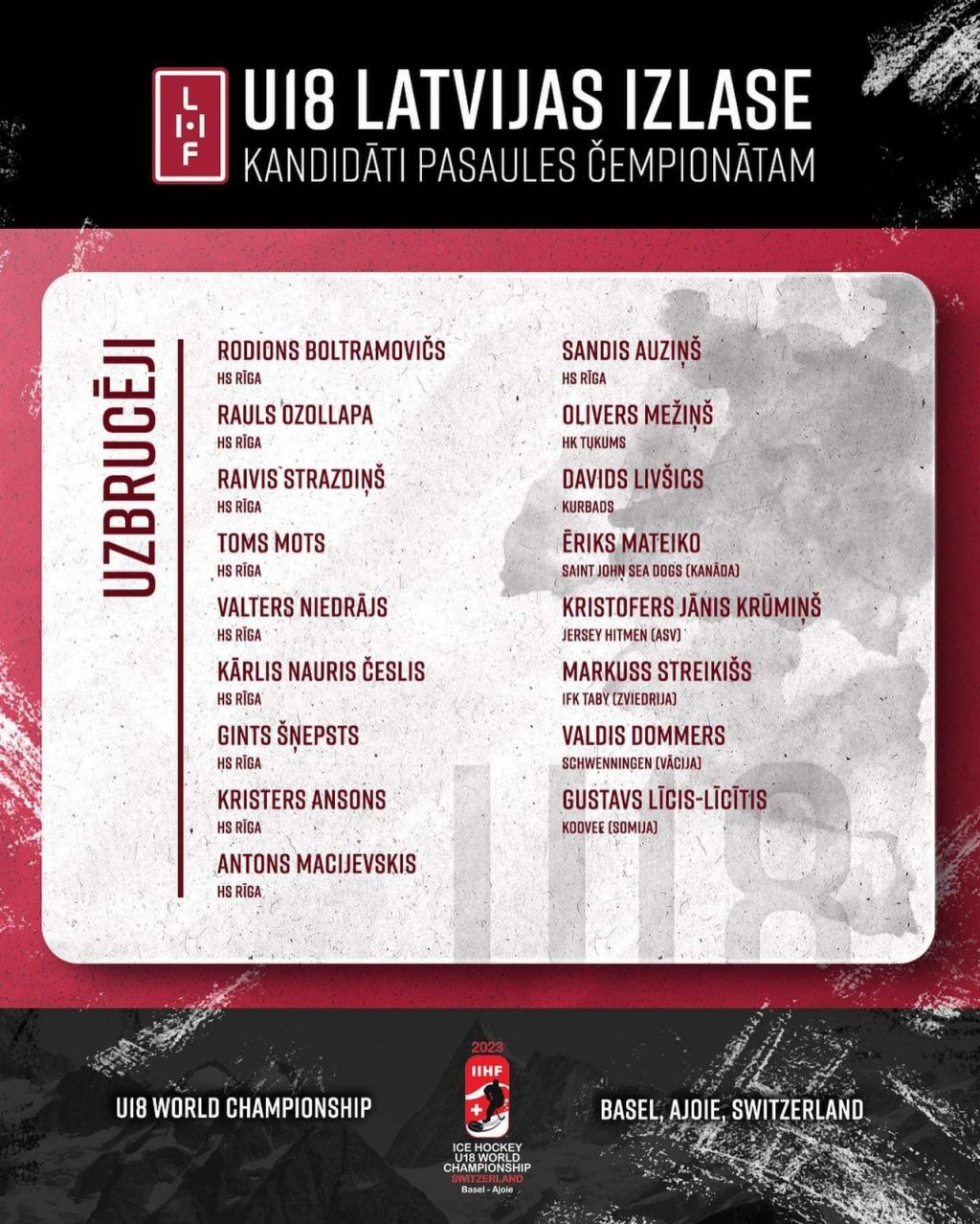 Latvijas U-18 hokeja izlases galvenais treneris Oļegs Sorokins nosaucis kandidātu sarakstu Pasaules čempionātam elites divīzijā, kas no 20. līdz 30. aprīlim norisināsies Šveices pilsētās Bāzele un Porantruī. U-18 Pasaules čempionātam Latvijas jaunatnes izlase uzsāks gatavošanos svētdien, 2. aprīlī. Kandidātu pulkā Sorokins iekļāvis arī Jāņa Svitiņa trenēto Hokeja Klubs Tukums Tukums spēlētāju, uzbrucēju Oliveru Mežiņu!