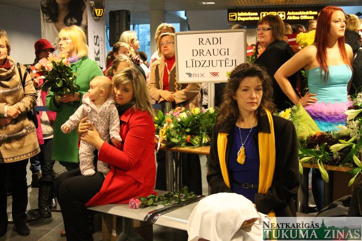 Reisam Maskava-Rīga bija jāielido 10.00, bet tas kavējās un bronzas medaļnieki lidostā «Rīga» nolaidās 12:14. Lidostā «Rīga» svinīgajā sagaidīšanā sportistus un trenerus sagaidīja vairāk nekā 150 atbalstītāju un radinieku un ne mazums mediju pārstāvju.