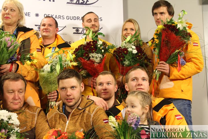 Sestdien, 15. februārī, Latvijā ar nelielu nokavēšanos atgriezās Latvijas kamaniņu izlase, kas Soču olimpiskajās spēlēs Latvijai izcīnīja divas bronzas medaļas. Viņus sagaidīt devās arī tukumnieki.