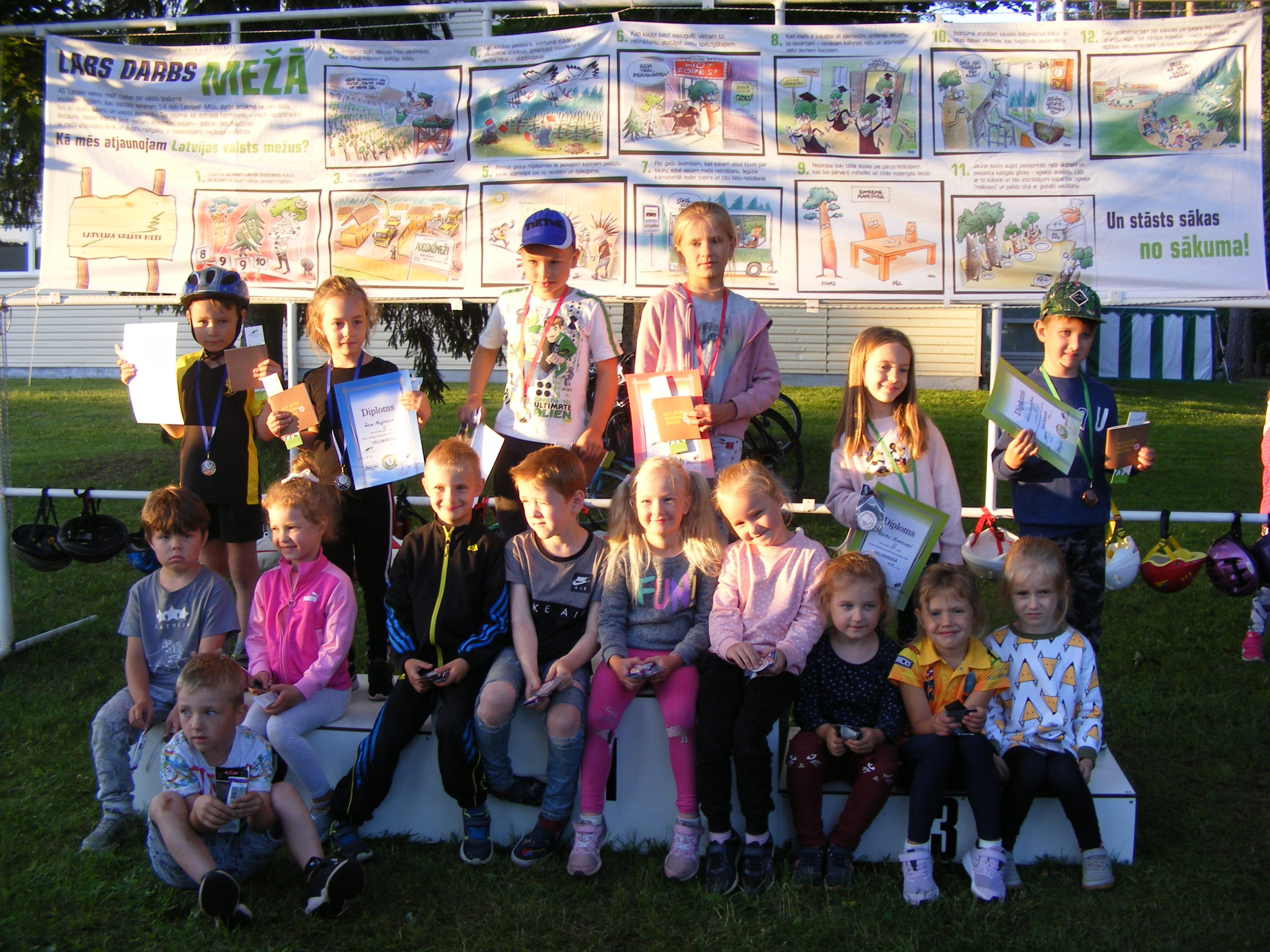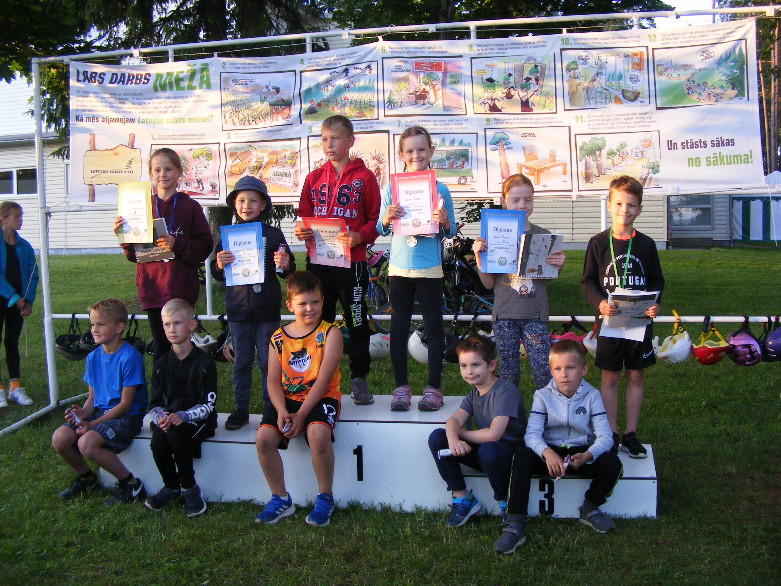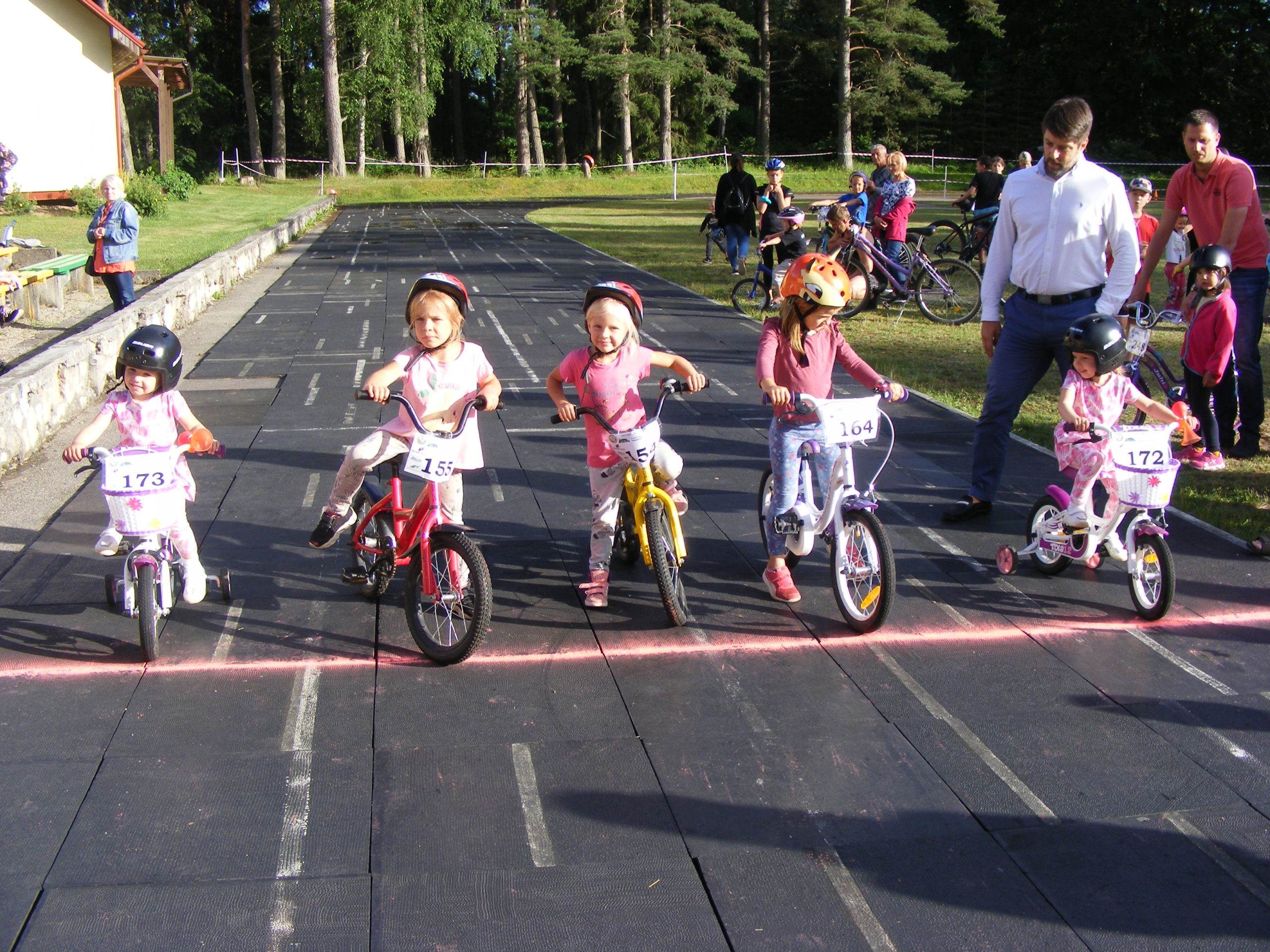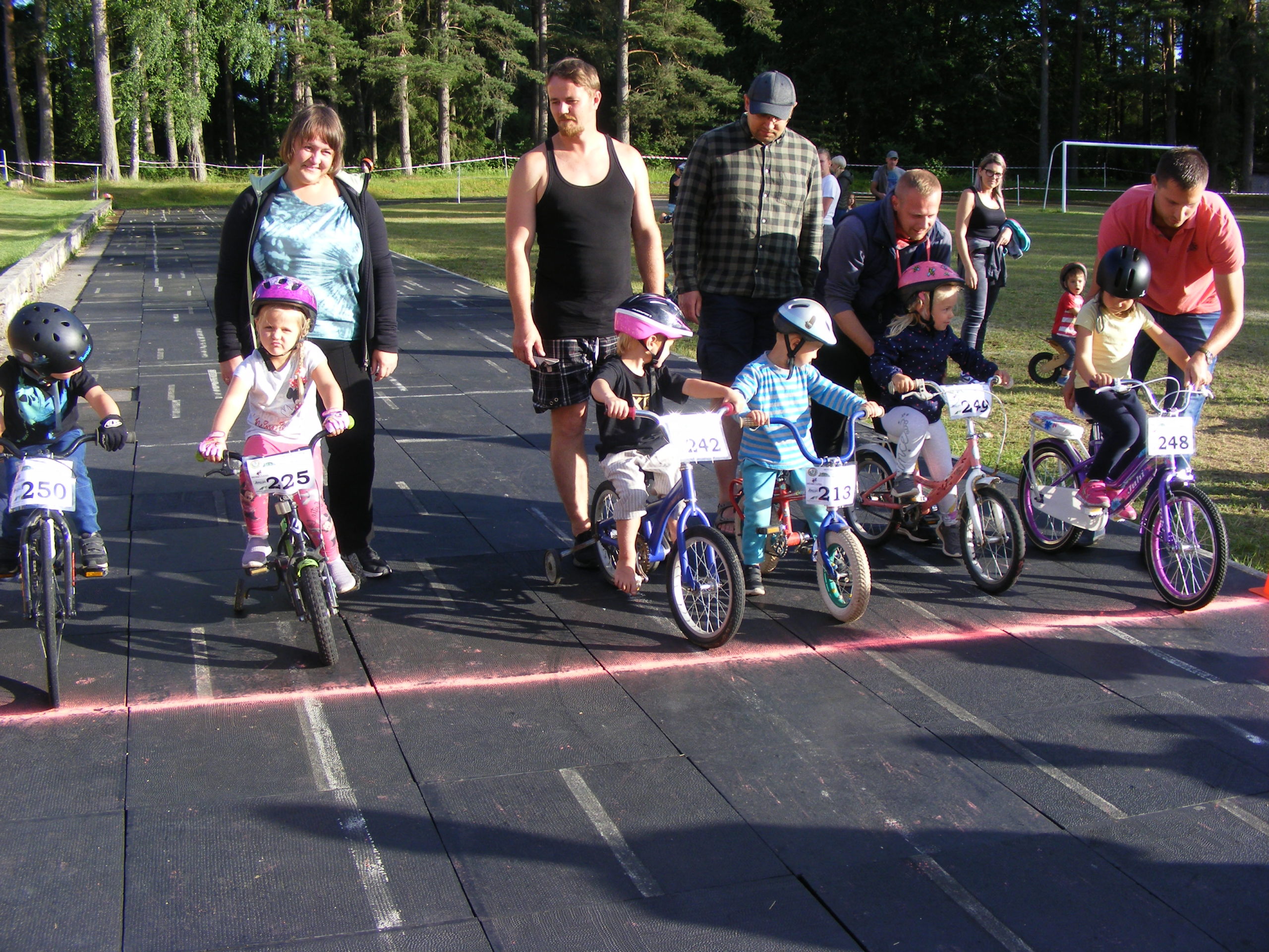 Uzvarētāji visās vecuma grupās: no 2. līdz 4. gadu vecumam ar ķēde piedziņu, 16 dalībnieku konkurencē 1. vietu ieguva – Miķelis Trubiņš; ar balansa riteņiem, 15 dalībnieku konkurencē – Mārtiņš Šaripo; no 5 līdz 6 gadiem – Oskars Važa un Evija Blūma; no 7 līdz 8 g. – Tomass Vanuška un Anna Pole; no 9 līdz 10 g. – Alberts Immermanis un Ketija Ozola; no 11 līdz 12 g. – Everts Biters un Elīna Eikena; no 13 līdz 15 g. – Mārcis Upīts un Elija Komisarova; no 16 līdz 29 g. – Kristaps Eikens un Evelīna Stepāne; 30+ vecuma grupā – Vladimirs judins un Kristīne Sila. Nākošie sacensību posmi plānoti 23. jūlijā un 6. augustā 19.00.