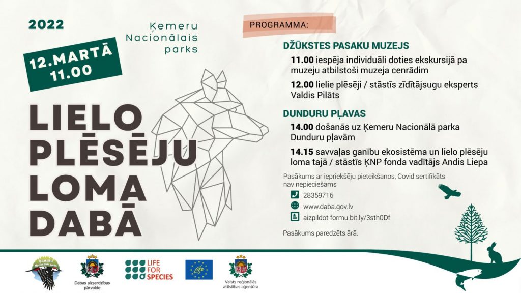 Pasākuma ietvaros 12.00 Džūkstes Pasaku muzeja pagalmā būs iespēja noklausīties dabas eksperta stāstījumu par lielajiem plēsējiem Latvijā; savukārt, 14.00 pārbrauciens uz Dunduru pļavām (~15 min.), kur varēs kopā ar ekspertu uzzināt vairāk, kā ar plēsējiem sadzīvo dabisko ganību galvenie iemītnieki – savvaļas zirgi un taurgovis.