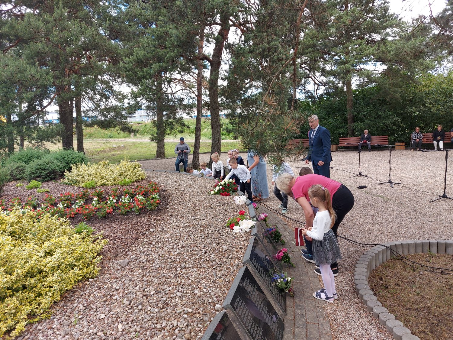 Kā, vēršoties pie pasākuma dalībniekiem uzsvēra G.Važa, deportācijas nevien tika sagrauti tūkstošiem ģimeņu, cilvēku nākotnes sapņi un dzīves, bet arī nodarīts smags zaudējums Latvijas tautai. “Tika iznīcināti mūsu valsts gaišākie prāti, uzņēmīgākie un strādīgākie cilvēki, kas bija zinoši, darbīgi un mīlēja savu valsti. Kaut arī laika rats gan aizvēlies tālu, un to dienu upuri, kā arī deportācijas noziegumu vaininieki jau devušies mūžības ceļos, šo nodarījumu nedrīkstam ne aizmirst, ne piedot, lai šādas traģēdijas kā 1941.gadā nekad neatkārtotos,” sacīja G.Važa un kopā ar ar pirmsskolas izglītības iestādes bērniem nolika ziedus pie represiju upuru piemiņas plāksnēm.