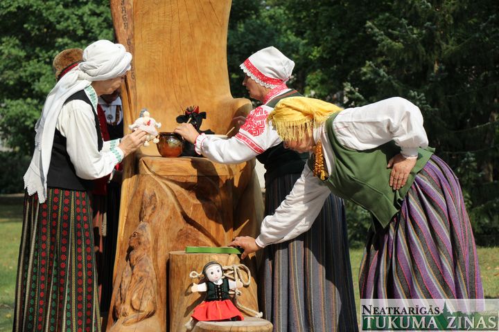 Pasākums turpinājās pie Džūkstes kultūras namu jeb bijušo pagasta biedrību namu, kura izveides rosinātājs arī bija A. Lerhs-Puškaitis. Tur tika solīts atklāt Teiku tēva darba simbolu – īpašu Pasaku krēslu. Krēslu izveidojuši Ivars un Aigars Rūrāni, kas, kā redzams, tam piešķīruši īpaši pasakainu burvību. Kā uzsvēra Tukuma novada domes priekšsēdētājs Ēriks Lukmans, iesēžoties šai krēslā, būšot iespēja piepildīt savus sapņus, jo pasaka visu pateikšot priekšā – kā un kas sapņa labā darāms.