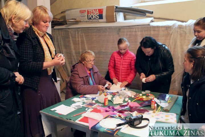 Jaunpilī nonācām brīdī, kad lietus gāza kā ar spaiņiem, taču gaisma caur Dievnama atvērtajām durvīm aicināt aicināja ienākt un sasildīties ar karsto timiāna un salvijas tēju, radošajā darbnīcā izgatavot eņģelīti un klausīties Tezē dziedājumus klarnetista Ivara Švalbes un ģitārista Anša Kluča pavadījumā.