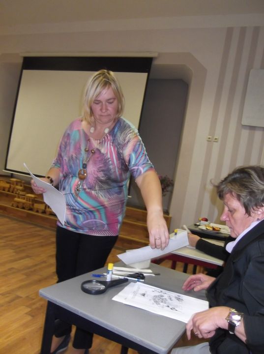 Bija uzdevums uz asfalta zīmēt piemērus no dzīvās un nedzīvās dabas. Tad sekoja praktiskais darbs, kas saistās ar koku lapu izpēti. Šajā darbā vēlējās piedalīties arī vecā Lamiņu parka koki, bet vējš pārāk juta līdzi un patraucēja. Darbs turpinājās skolas zālē. Kopīgi spriedām, kā izmantot dabas materiālus ikdienas darbā. Par labu paraugu kalpoja no skolas apkārtnē salasītajām lapām veidotais gudrības simbols – Pūcīte. Noslēgumā semināra dalībnieki pildīja darba lapu ar uzdevumu izveidot puķu vīriņu. Secinājums bija vienbalsīgs – šādi radoši semināri dod spēku turpmākam darbam. Jātiekas atkal un atkal!