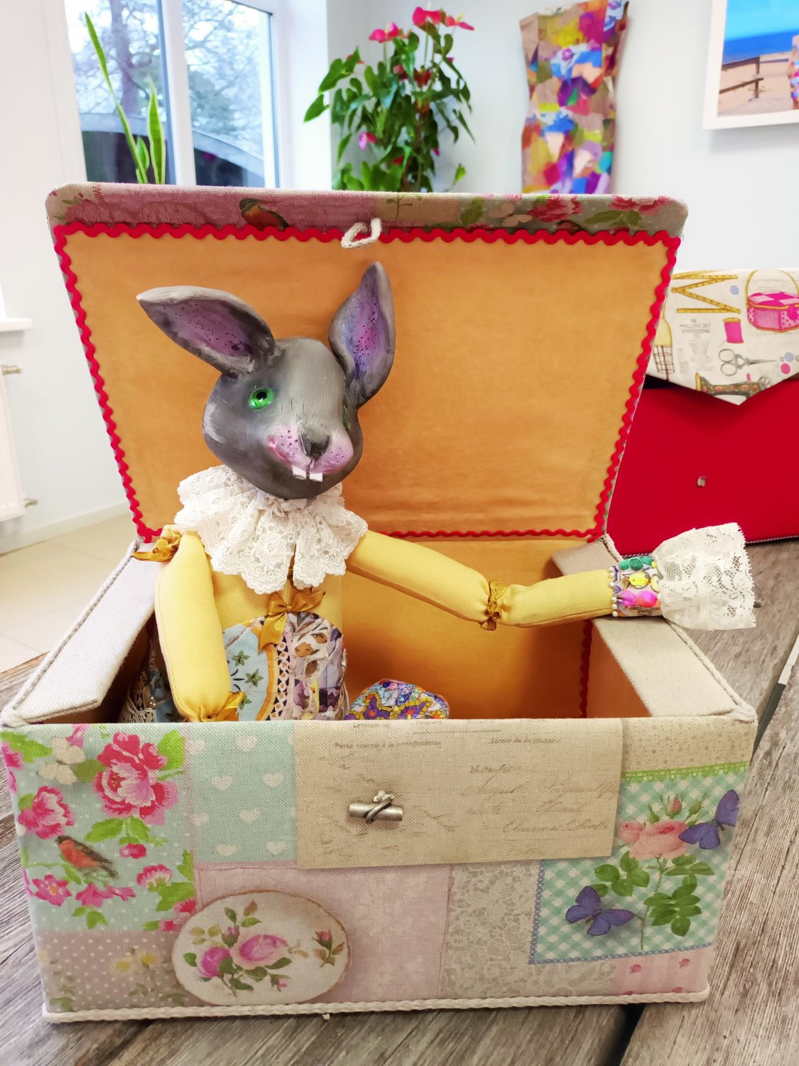 Izstādē skatienu priecēs dekupāžas risinājumi uz dažādām virsmām – lādītēm, šķīvjiem – un pat padomju laika “diplomāta” uzziedināšana vasaras pļavu ziedu krāšņumā. Pārsteigums ir gan kleita – vides objekts, gan arī no audumu fragmentiem speciālā tehnikā darinātā elegantā žakete. Izstādes romantiskie darbi pieder Silvijai Bērziņai – viņas rokrakstu nevar nepazīt. Tās ir perfekti ar karalisku audumu un dažādiem rotājošiem elementiem apvilktas visdažādākās kārbiņas. Turklāt, visus apmeklētājus sagaidīs amizanto Lieldienu zaķu ģimenīte.