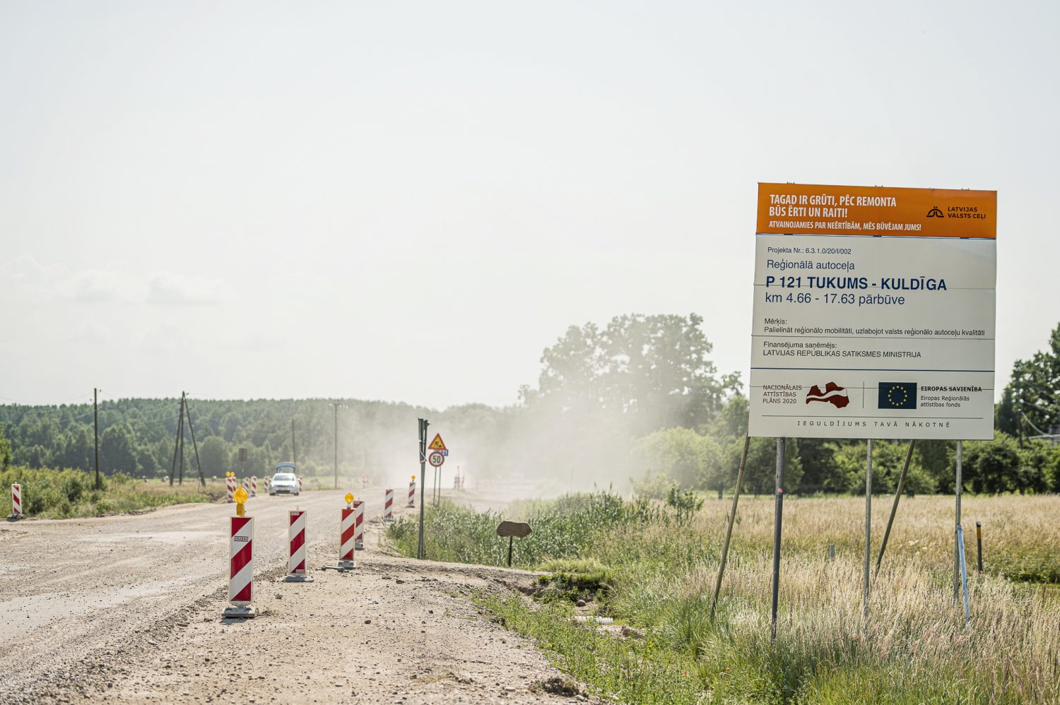Turpinās martā uzsāktie pārbūves darbu uz autoceļa Tukums–Kuldīga (P121) posmā no Līduma līdz Grenčiem (4,66.-17,63. km). Projekts tiek realizēts ar Eiropas Savienības fondu atbalstu. 13 km garajā posmā izbūvēs jaunu drenējošo kārtu, šķembu nesošo pamatu un asfaltbetona apakškārtu un dilumkārtu, ūdens atvades sistēmu, pārbūvēs caurtekas. Tiltam pār Abavu atjaunos gala sienas, spārnus un deformācijas šuves. Visā posmā atjaunos 18 sabiedriskā transporta pieturvietas, no kurām trijās paredzēts uzstādīt paviljonus, apdzīvotajā vietā Sātos līdzās autoceļam izbūvēs 200 m garu ietvi.
