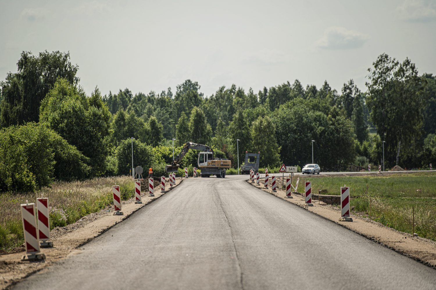 Patlaban būvdarbu zonā notiek ceļa klātnes izbūve, bet 1,5 km posmā no Sātiem Tukuma virzienā jau izbūvēta asfalta apakškārta.