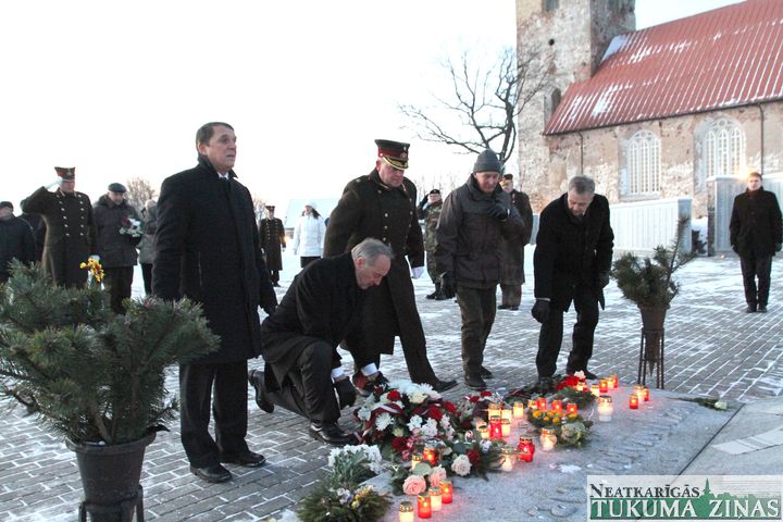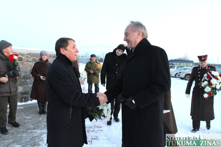 Godinot kritušos karavīrus, Andris Bērziņš noliek ziedus Lestenes brāļu kapos