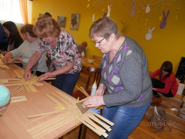 Šādas nodarbības notiek divas reizes mēnesī un tām visus materiālus sagādā biedrības «Irlavas interešu klubiņš» dalībnieces, kuras arī palīdz darbošanos organizēt. Lielajā Piektdienā kultūras namā pulcējās tās dalībnieces, kuras gribēja iemācīties pīt skalu groziņu pīšanu. Iesākumā šis darbs šķita diezgan sarežģīts, bet, kopīgi darbojoties, katra dalībniece tika pie skaista groziņa raibajām Lieldienu olām.
