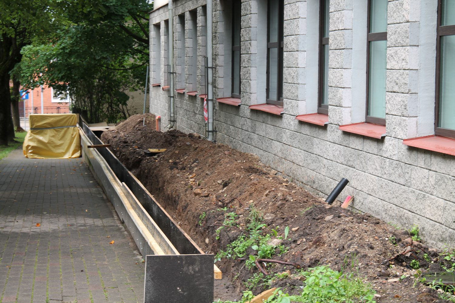Mēs sazinājāmies ar SIA «Amatnieks» valdes priekšsēdētāju Janeku Žizņevski un vaicājām, vai pašvaldība ar viņu jau sazinājusies un runājusi par iespējamajām problēmām šī uzņēmuma celtajā ēkā. Un vēl vaicājām, vai plaisas jaunās skolas ēkas sienās, kas tika konstatētas arī iepriekš, varētu būt saistītas ar pazemes ūdeņiem – avotiem vecās skolas pamatos. J. Žizņevskis skaidroja, ka ar ūdeņiem šajā vietā ir lielas problēmas: “Tādas tās bijušas gadu desmitiem. Vispirms jau, kad 2007. vai 2008. gadā pārbūvēja Raiņa skolas stadionu, projektā bija kļūda, un būvnieks lietus ūdens kanalizāciju no stadiona ievadīja jaunās skolas drenāžā. Skolas ēku tad jau bijām uzcēluši, bet problēmas konstatēja tikai tad, kad pēc liela lietus applūda pagrabs.”