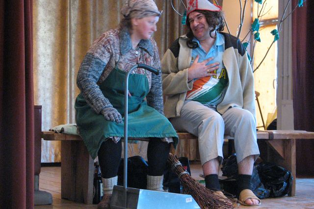 Mūsdienīgām problēmām caurvīta, brīžam jautra, brīžam arī smeldzīga luga, kas laiku pa laikam atsevišķās epizodēs liek aizdomāties par dzīvi, par līdzcilvēkiem, par sabiedrības attieksmi pret bezpajumtnieku jeb, kā tautā visbiežāk mēdz teikt – «bomzi». Bomzis – tas ir šī iestudējuma galvenais varonis, kura lomā uz skatuves redzējām Intu Leitartu. Bez galvenās lomas atveidotāja izrādē iesaistījušies vēl septiņi Cēres amatierteātra dalībnieki: Solvita Zvirgzdiņa, Inga Junkurēna, Līga Roze, Juta Reinsone, Pēteris Aļehnovičs, Ilze Konova un Uldis Grenevics, kuru slimības dēļ uz skatuves sestdien neredzējām, bet viņu aizvietoja pati režisore – Valija Skarnele. Un, protams, divas jaukās "priekšā teicējas" – Maija Jēce un Dace Seile.