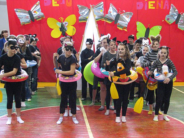 Jubilejas pasākumu otrdien atklāja Deju dienas krustmāte un pasākuma galvenā režisore – skolas sporta skolotāja Inna Jēkabsone. Šogad deju svētku programma bija divdaļīga. Pirmajā daļā skatītājus priecēja teatralizēts uzvedums «Kaķu piedzīvojumi», dodot iespēju izsekot līdzi visdažādākajām kaķu gaitām un izdarībām no agras rīta stundas līdz pat vēlam vakaram.