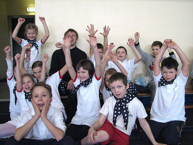 Pirmā zālē ieradās Kandavas K. Mīlenbaha vidusskolas (KVS, sporta skolotāja Aiva Ķeniņa) un internātvidusskolas (KIVS) komanda (skolotāja Inna Jēkabsone). Nolikumā bija paredzēts, ka komandu pārstāv piecas meitenes un tikpat zēni, kas dzimuši 1999. gadā un jaunāki. Un jāteic, ka internātvidusskolu pārstāvēja pat divas mazo sportistu komandas! Gaidot sacensību pretiniekus no novada lauku skolām, pilsētas bērniem bija laika mazliet patrenēties. Drīz vien klāt bija arī autobuss, atvizinot sportistus no Zemītes (skolotāja Līga Roze), Vānes (skolotāja Dzintra Lastovska), Zantes (skolotāja Laila Šaicāne) un Matkules (skolotājs Ģirts Bērziņš). Sacensībās nepiedalījās vien Cēres pamatskolas komanda.