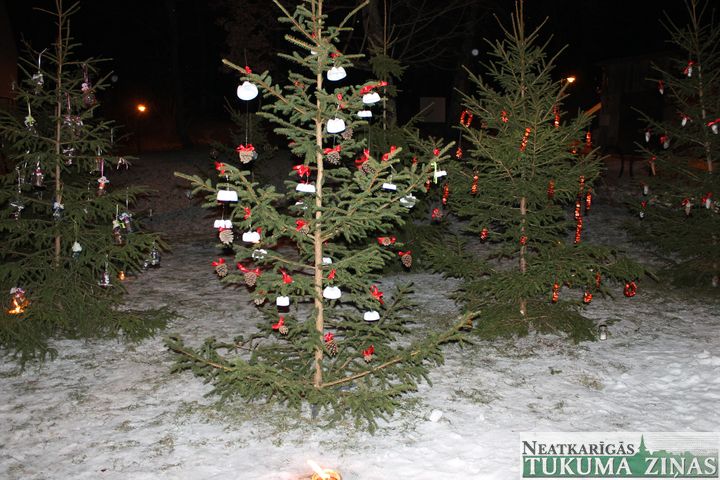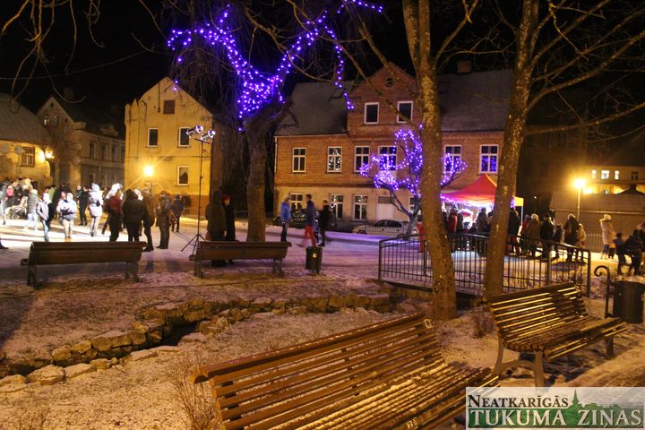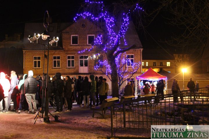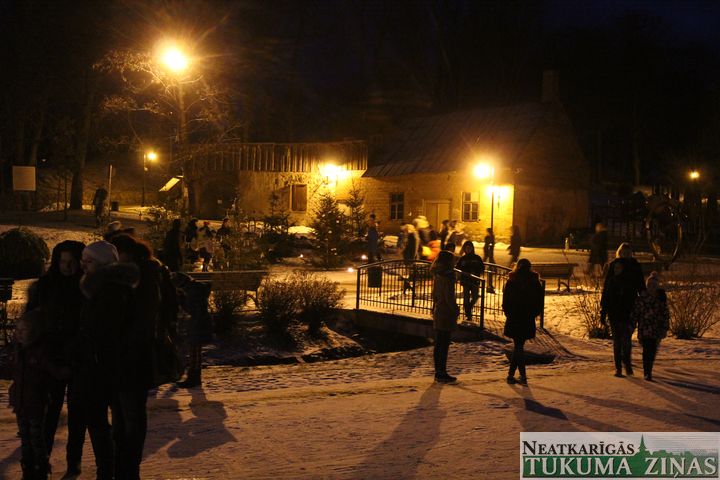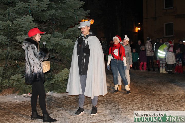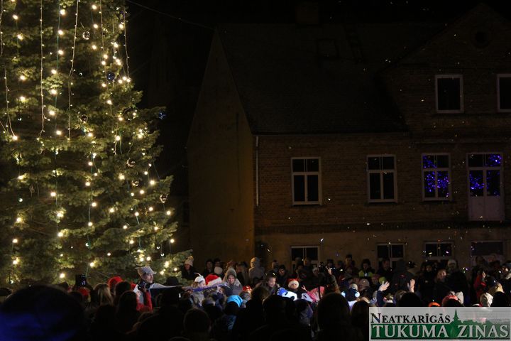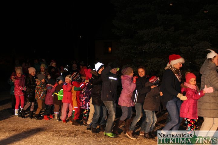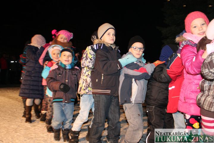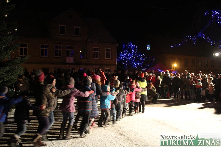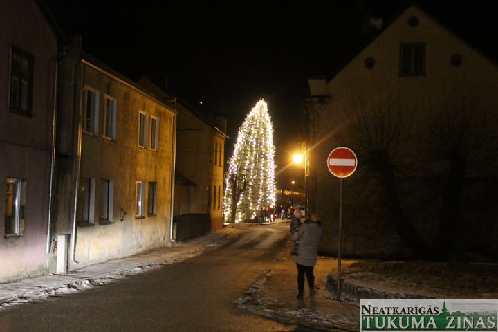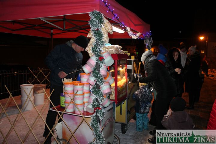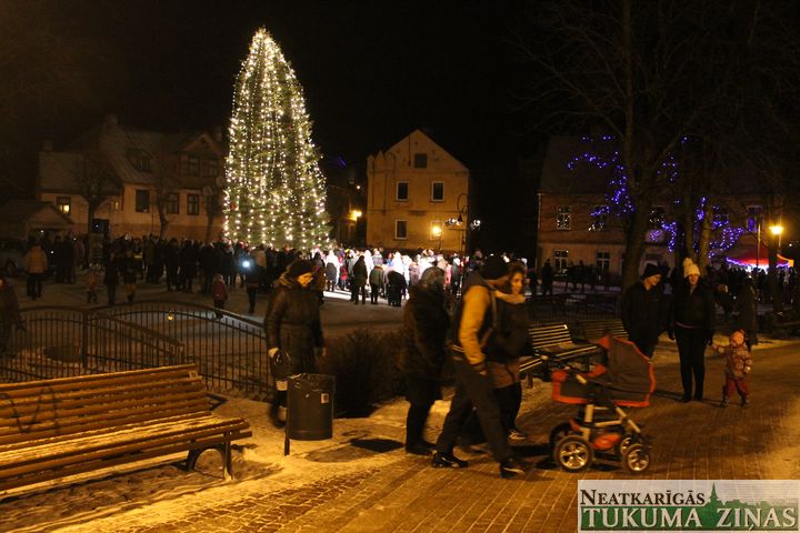 Kandavas promenādē 6. decembrī pirmās svētku rotu ieguva 11 mazās eglītes piekalnītē – katrai novada izglītības iestādei pa vienai pušķojamai zaļsvārcei. Taču lielajai eglei lampiņas kuplā draugu lokā tika iedegtas tikai ar tumsas iestāšanos. Šogad 20 m augsto egli pilsētai dāvināja skolotājs Gatis Frīdenbergs, un tās iedegšanās piedalīties jo īpaši aicināti bija tieši mazākie pilsētas iedzīvotāji.