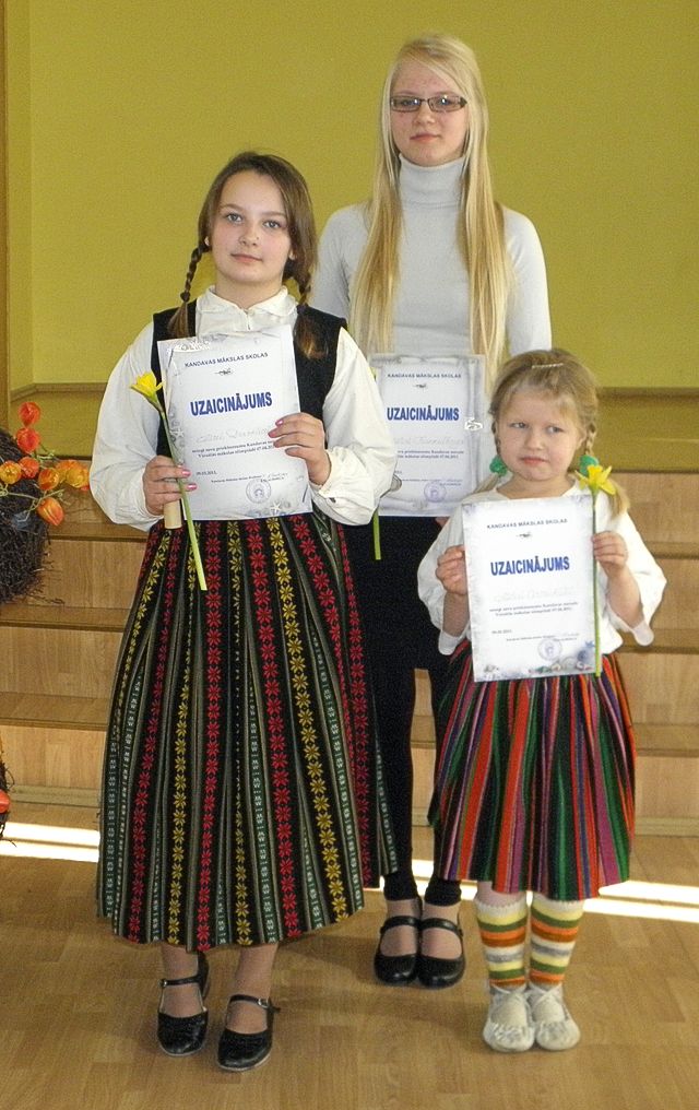 Dziedātāju sniegumu trijas vecumu grupās vērtēja radoša žūrija, kuras sastāvā bija Maruta Balode – Kandavas Mūzikas skolas direktore, kultūras darba organizatore Solvita Jansone un Mākslas skolas direktore Ērika Klauberga. Visi konkursa dalībnieki saņēma novada Izglītības pārvaldes Atzinības rakstu, simboliskas dāvaniņas un žūrijas pārstāvju uzslavas. "Dziedāt bez pavadījuma, tas nav vienkārši! Tam viennozīmīgi vajadzīga liela uzdrīkstēšanās un drosme, tāpēc par visiem jaunajiem solistiem varu teikt – malači!" tā konkursa dalībniekus uzteica S. Jansone. Tautas dziesmu konkursa uzvarētāju godā, atbilstoši solistu vecuma grupai, sumināja Kandavas internātvidusskolas audzēkni Alitu Cerauksti (mūzikas skolotāja Inta Pakalns-Paleja) un Kandavas K. Mīlenbaha vidusskolas audzēknes Esteri Dravnieci un Rūtu Kunkulbergu (mūzikas skolotāja Eva Šepetovska). Šie trīs jaunie solisti saņēma uzaicinājumu piedalīties koncertā, lai aprīlī iepriecinātu Mākslas skolā sabraukušos novada un starpnovadu vizuālās mākslas olimpiādes dalībniekus.