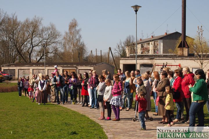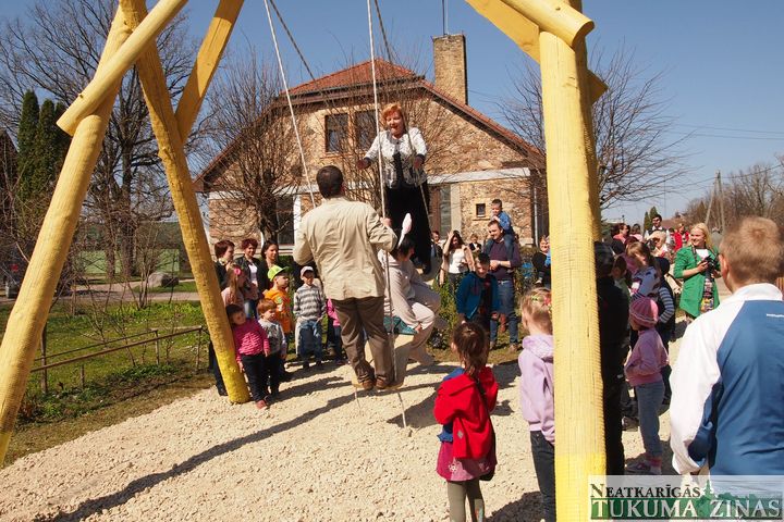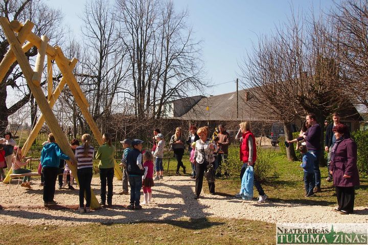 Svētdien Lielo dienu ar dziesmām un dejām ieskandināja it visā novadā. Nu varam droši sacīt – Lieldienu centrālā tradīcija šūpošanās – garantēta visā novadā, tostarp arī Kandavā un Zemītē, kur līdz šim lielo šūpoļu nebija. Jaunieguvums visiem novada pagastiem ir ābelītes dēsts, ko Lieldienās pagastu pārvaldniekiem dāvināja domes priekšsēdētājs Normunds Štoferts ar vēlējumu to rūpīgi audzēt, saudzēt, lolot un bagātu ražu dienās ievākt. Saulainas, līksmas un priecīgas Lieldienas!