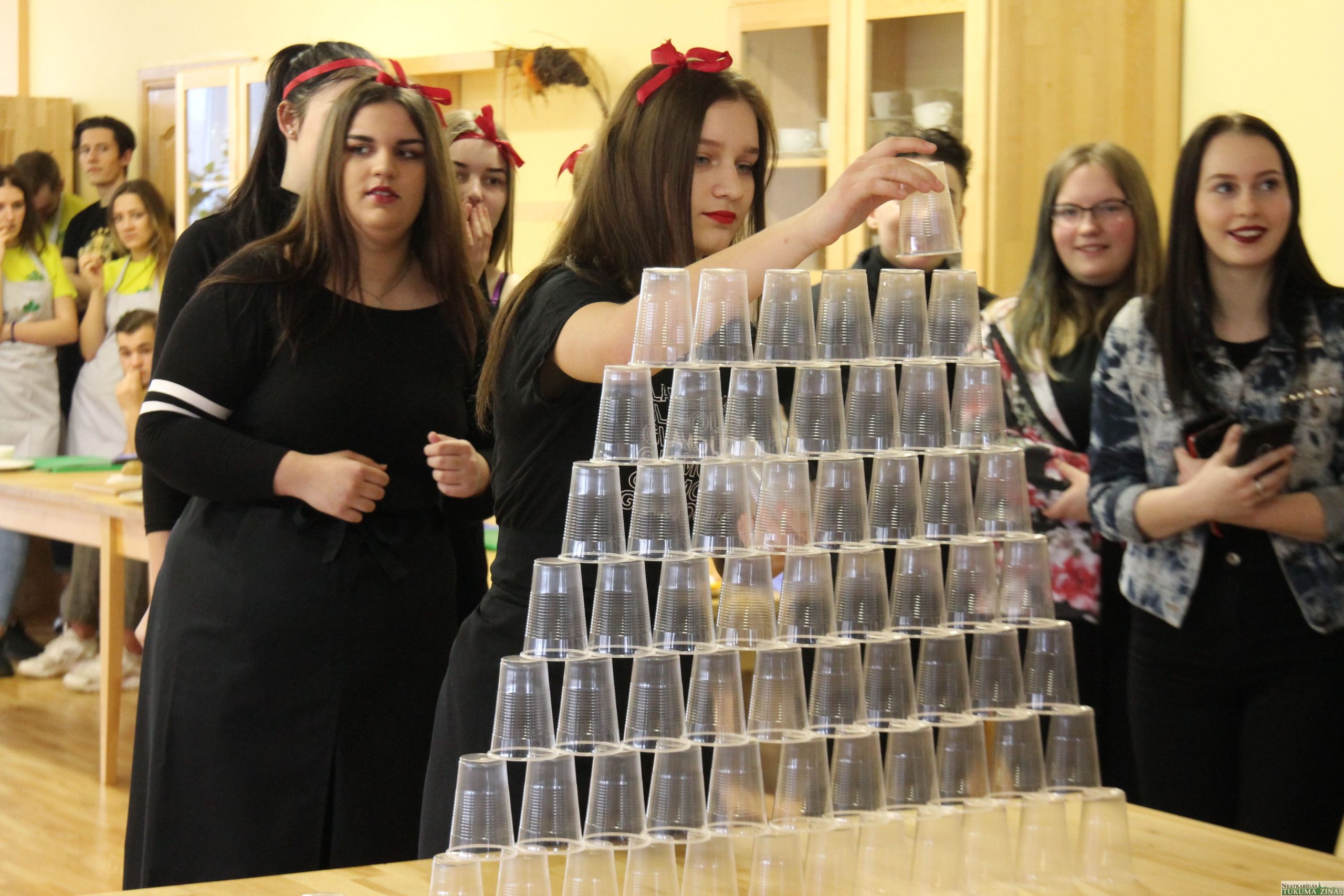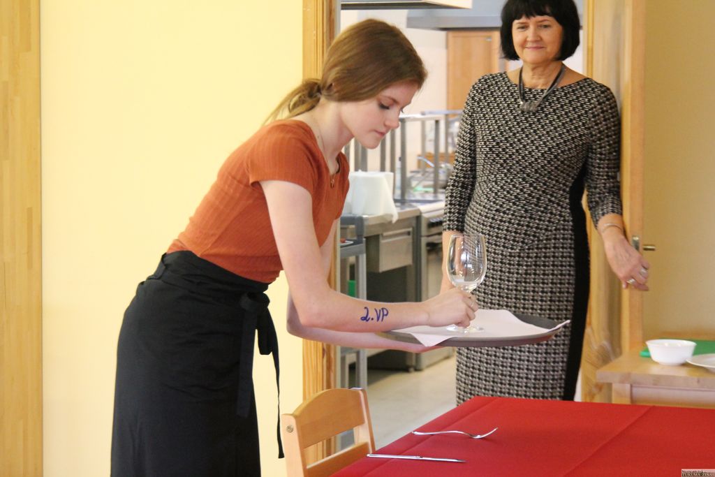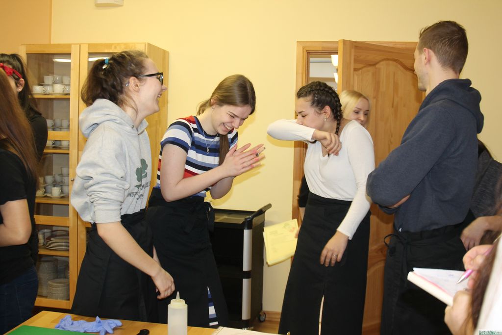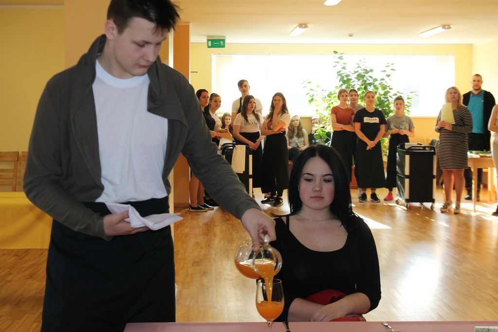 Rīta pusē, kad palaimējās būt tehnikumā, mācību zālē valdīja satraukta rosība. Tikko savu darbu bija paveikuši kūku konkursa dalībnieki un veikumu izlikuši apskatei. Savukārt vecāko jeb 4. ēdināšanas un viesnīcu pakalpojumu kursu jaunieši saskaņoja veicamo – uzdevumus, kas paredzēti viņu jaunākajiem kolēģiem.