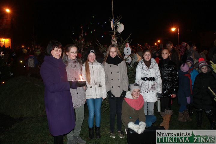 Promenādē katras novada skolas pārstāvji tika aicināti iedegt sveces pie pašu rotātām eglēm – pavisam 12. Šogad šī ir jauna un skaista tradīcija, ko izlolojusi skolotāja un Sākumskolu metodiskās apvienības vadītāja Agita Pētersone. Rosību Promenādē bija pamanījis arī Ziemassvētku vecītis…