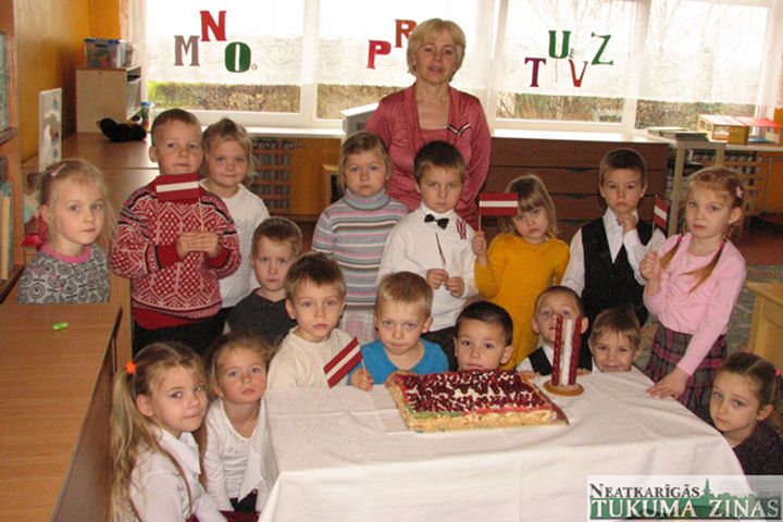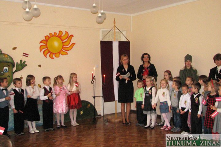 Piektdien svētku noskaņa valdīja arī pilsētas bērnudārzā «Zīļuks». Rīta agrumā mazie jūsmoja par pagalmā svecītēm izgaismoto Latvijas karti.Vēlāk, visi devās uz svētkiem saposto zāli, kur zīļuks (skolotāja Elīna Jēgermane) bērniem stāstīja par Latviju kā valsti, kā dzimteni katram vienu vienīgo.